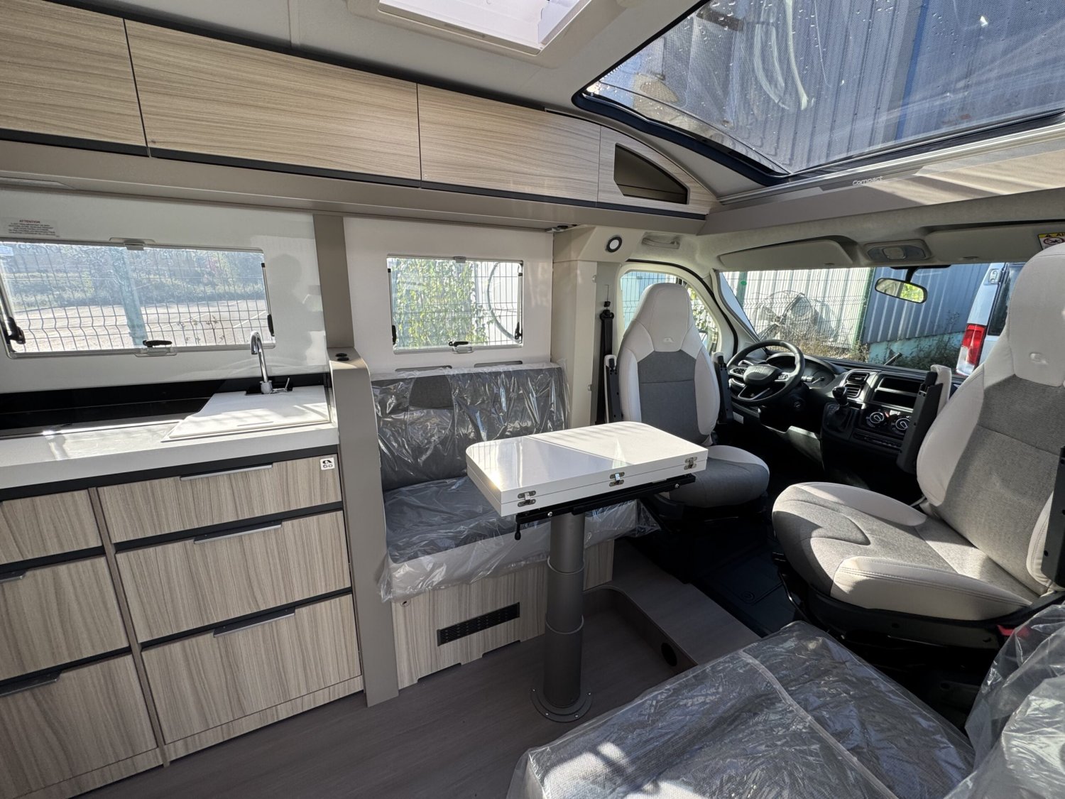 profilé Lit jumeaux et salon face face aux dimensions proches d’un fourgon, batterie lithium