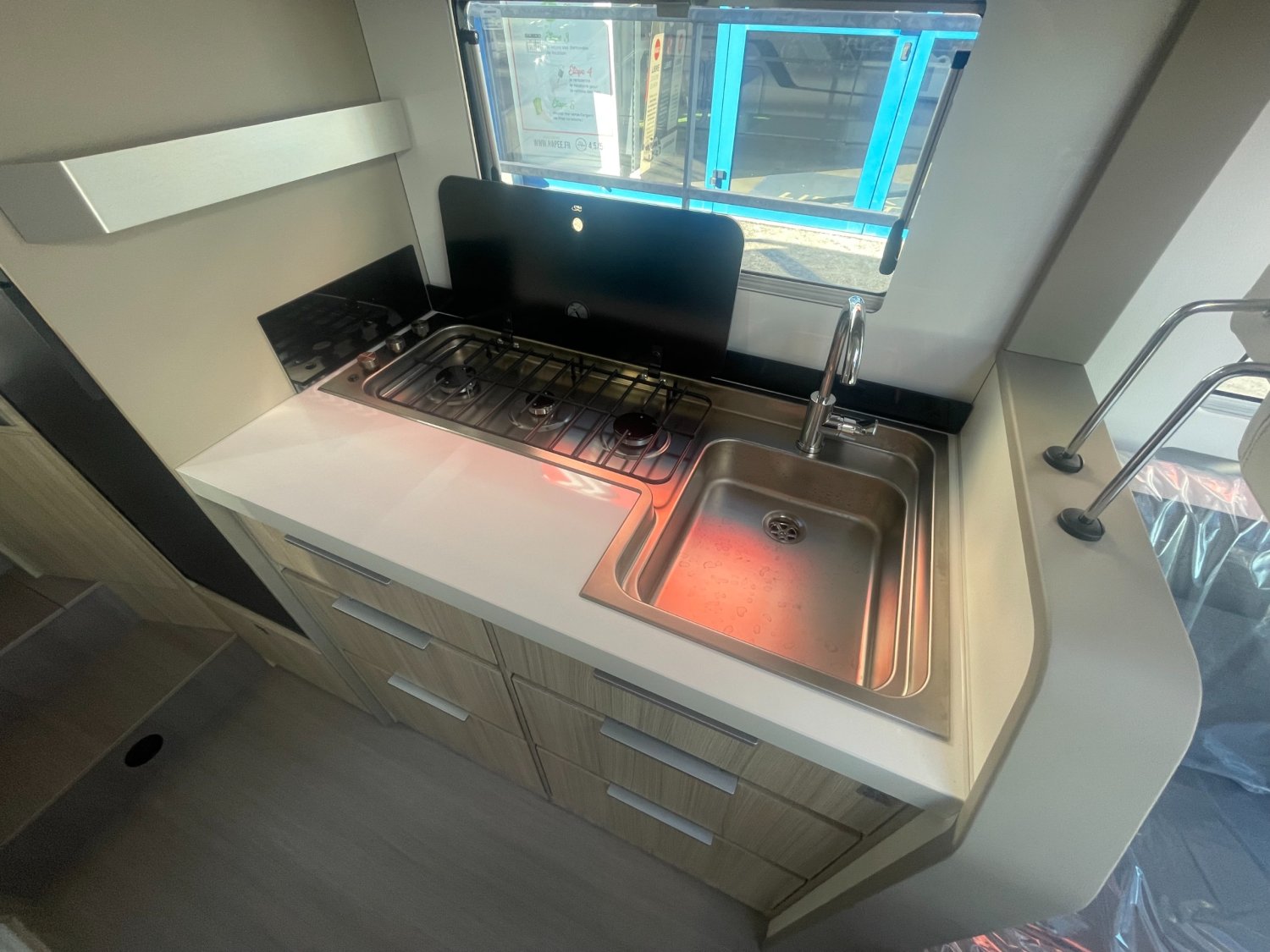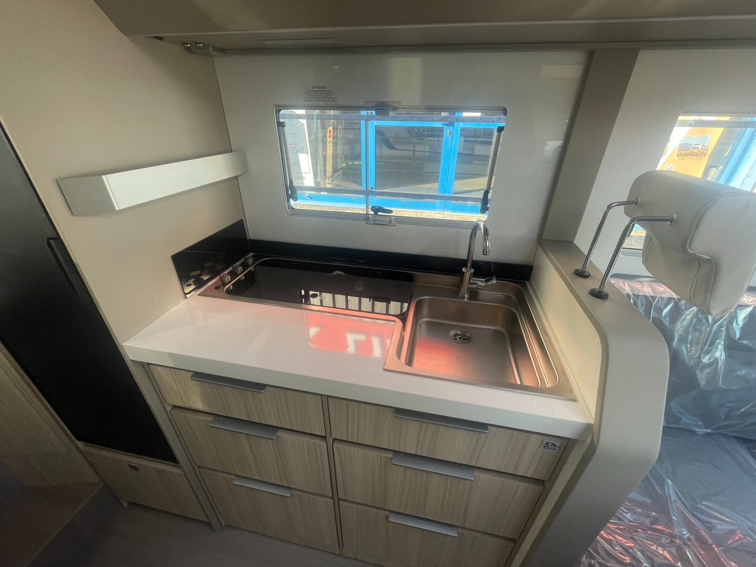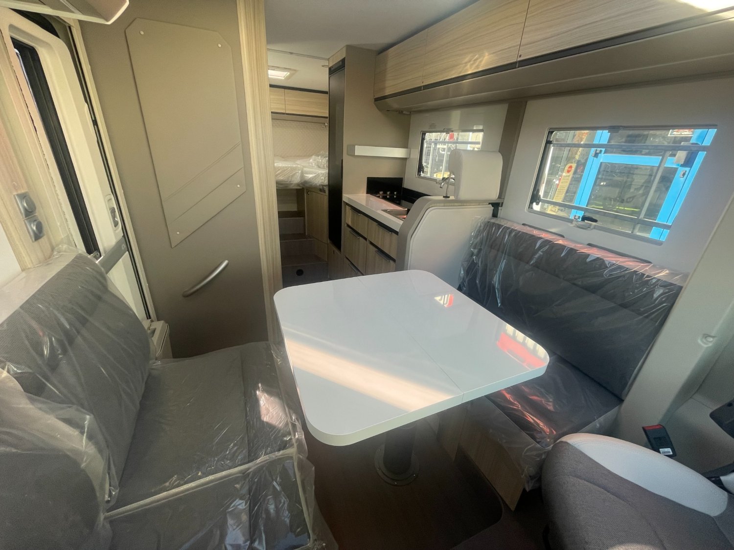 Support TV, Soute garage avec revêtement textile, Tapis premium garage en caoutchouc, Commandes au volant, Stores d’occultation cabine et pare-brise, Nouveau design 60e anniversaire, Toit panoramique cabine, Grand réfrigérateur 149 L, Matelas mousse haute densité, Réservoir d’eau usée chauffé et isolé, Pare-chocs peints, Antibrouillards avant, Feux arrière full LED, Réservoir carburant 90 L, Égouttoir cuisine, Porte cellule avec moustiquaire, Fiat Ducato 2.2L 140cv 35L