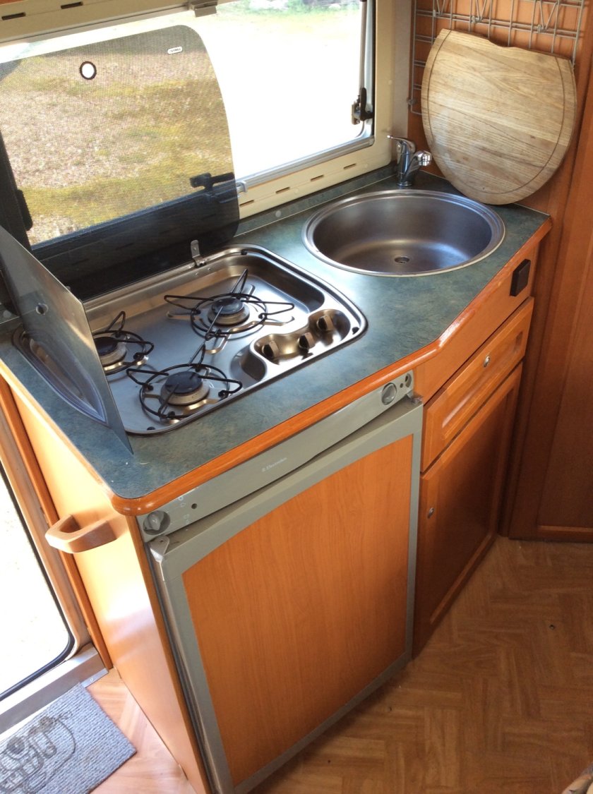 CELLULE: Réfrigérateur trimixte, Truma Combi ECS & Chauffage, Télévision & antenne Hertz., WC cassette, Lanterneaux, Plaque Cuisson 3 foyers, Eclairage tout Led., Marche-pied électrique.