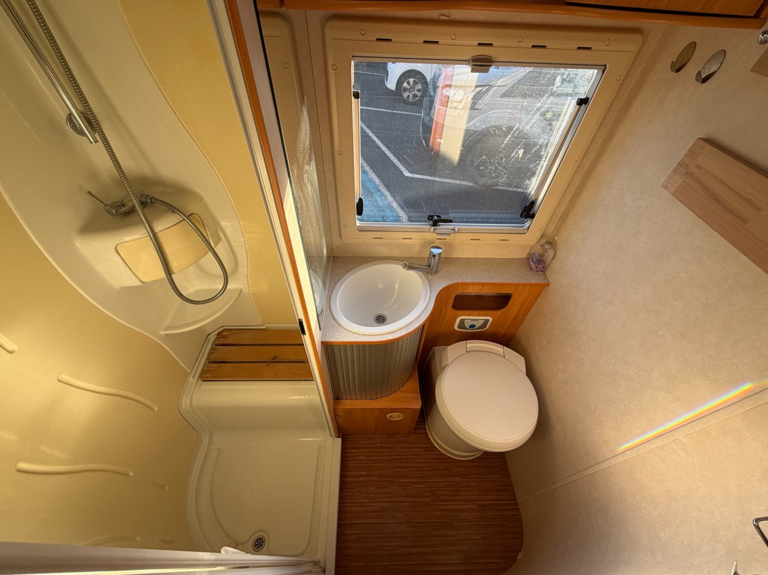 Profilé avec une grande soute, cuisine en L, grand salon confort, salle de bain avec paroi de douche, excellente qualité de fabrication ADRIA