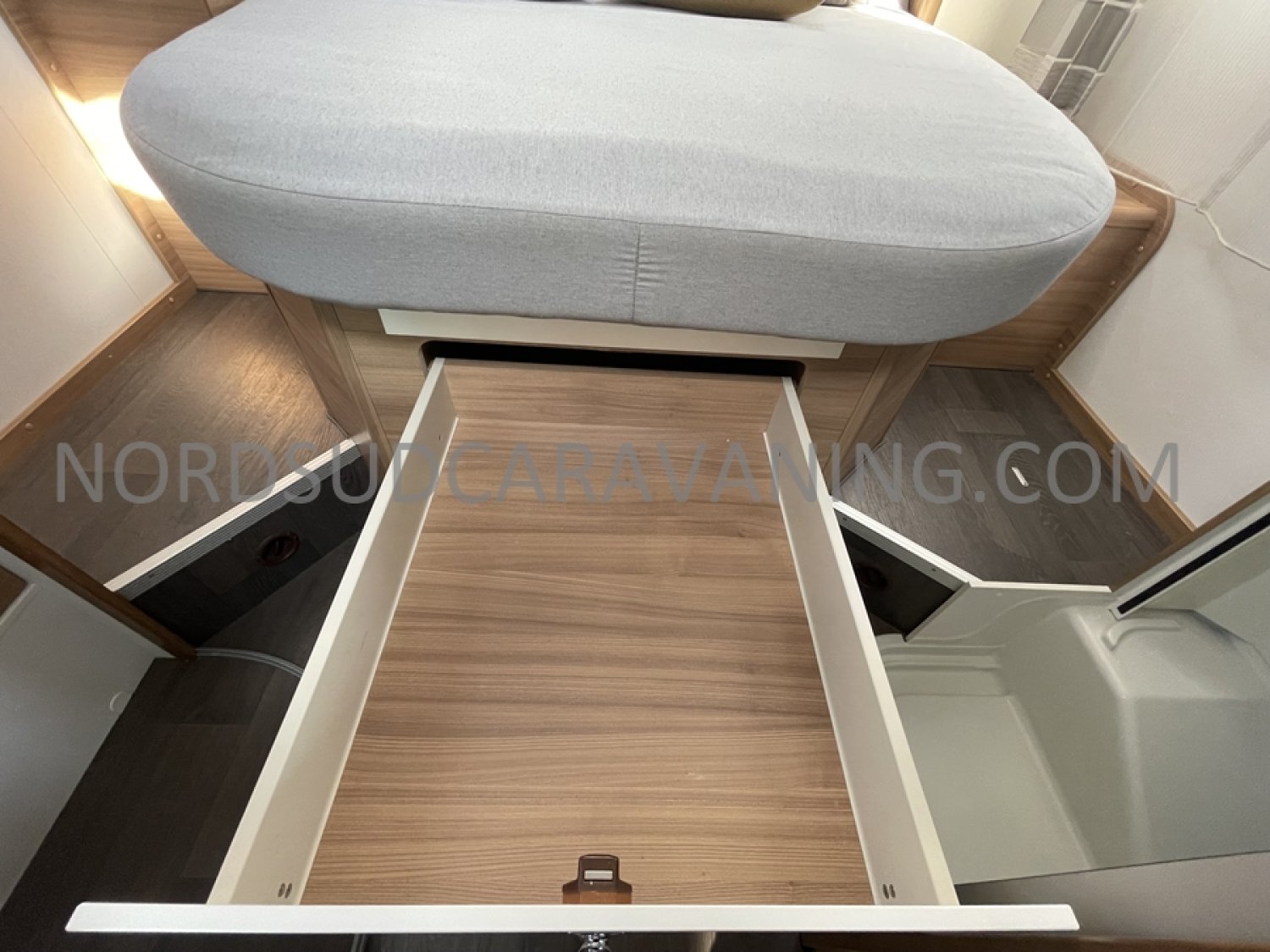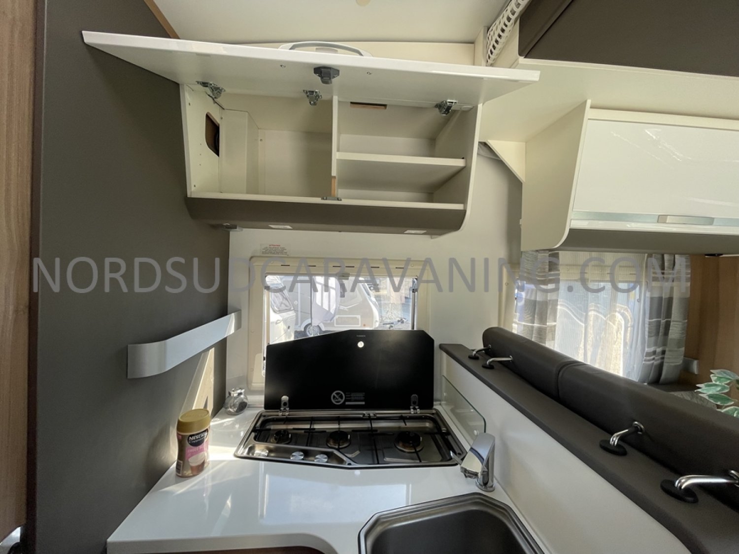 Grâce à sa forme compacte, sa maniabilité vous permettra de circuler ou de vous garer facilement. Vous profiterez de sa grande chambre avec son lit central pour vous garantir une parfaite nuit de sommeil. Son espace dinette agréable et convivial se transforme également en couchage supplémentaire avec son lit dinette et son lit pavillon. Sa cuisine fonctionnelle grâce à ses nombreux rangements optimisés est équipée d’une plaque de cuisson 3 feux gaz avec un couvercle en verre, un évier inox et un réfrigérateur congélateur 141L. Son coin toilette agréable avec WC, Lavabo et Miroir. Juste en face, une grande douche indépendante. Sa soute garage pratique pour transporter son matériel de camping, vélos... Sans oublier ses nombreux agencements astucieux !