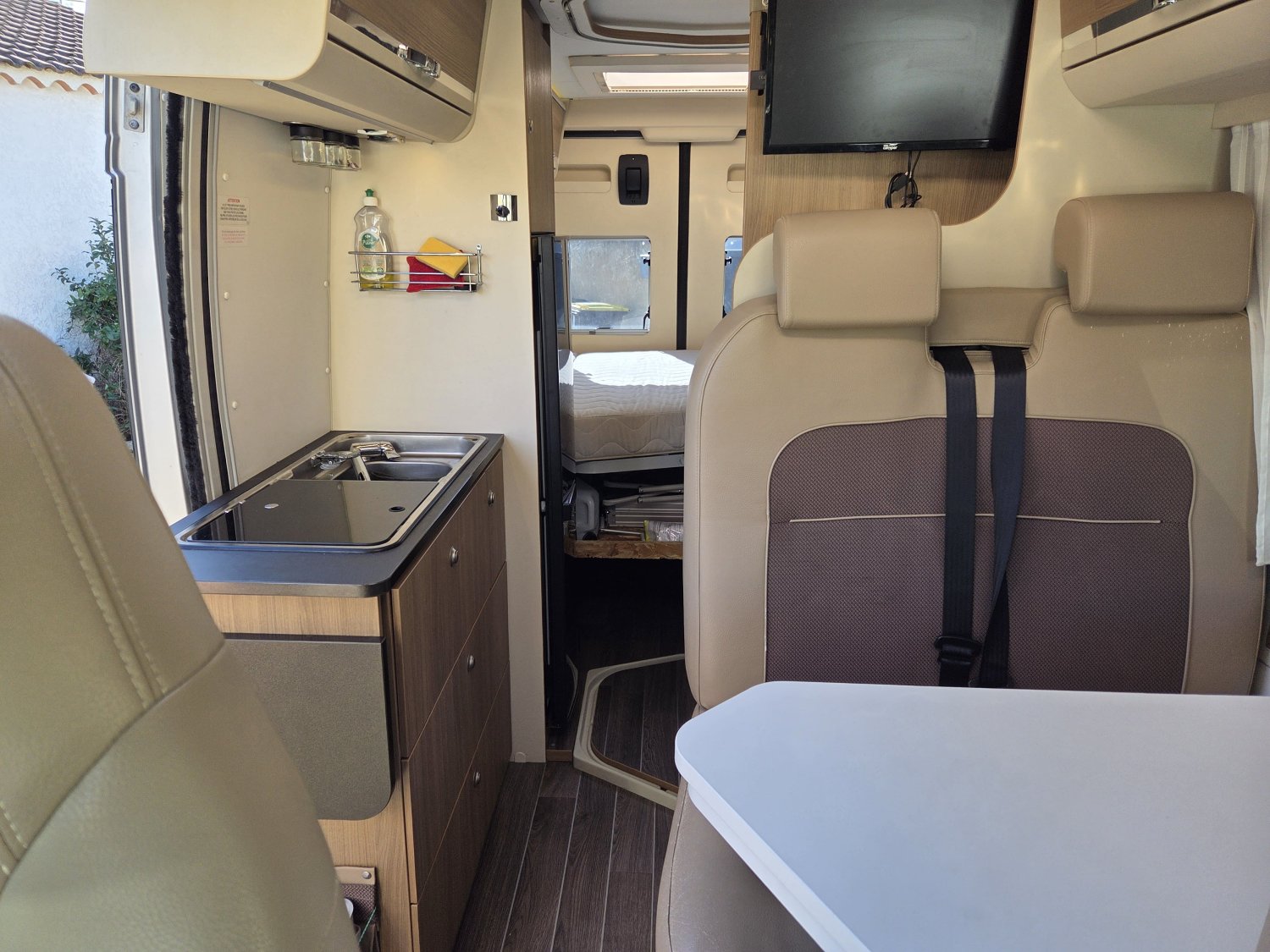 Fourgon Adria 600 SPB de 2018, monté sur Citroën 2,2L de 130 ch, reconnu pour sa fiabilité et sa sobriété. Compact et maniable, il offre un excellent compromis entre confort et facilité de conduite, aussi bien sur route qu’en ville. Son aménagement Adria est soigné et fonctionnel, avec des matériaux de qualité et une bonne luminosité à bord. Idéal pour les escapades à deux ou en famille, ce fourgon permet de voyager en toute autonomie tout en conservant un gabarit