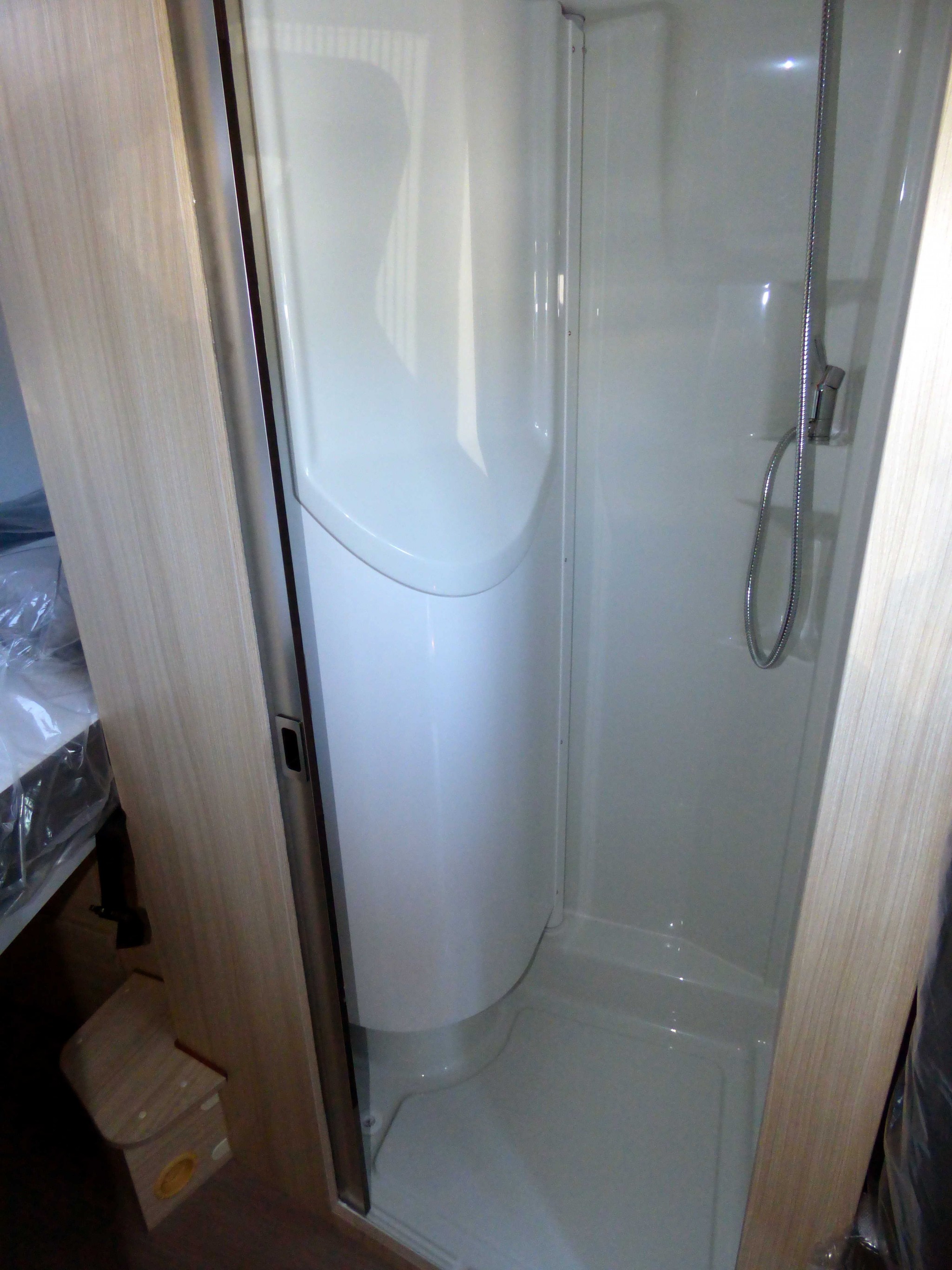 Vous trouverez également une salle d'eau ingénieuse grâce au cloisonnement amovible, un frigo à compression, une grande penderie, un mobilier soigné et robuste ainsi qu'un intérieur à la fois subtil et lumineux, véritable marque de fabrique des TWINS ADRIA..