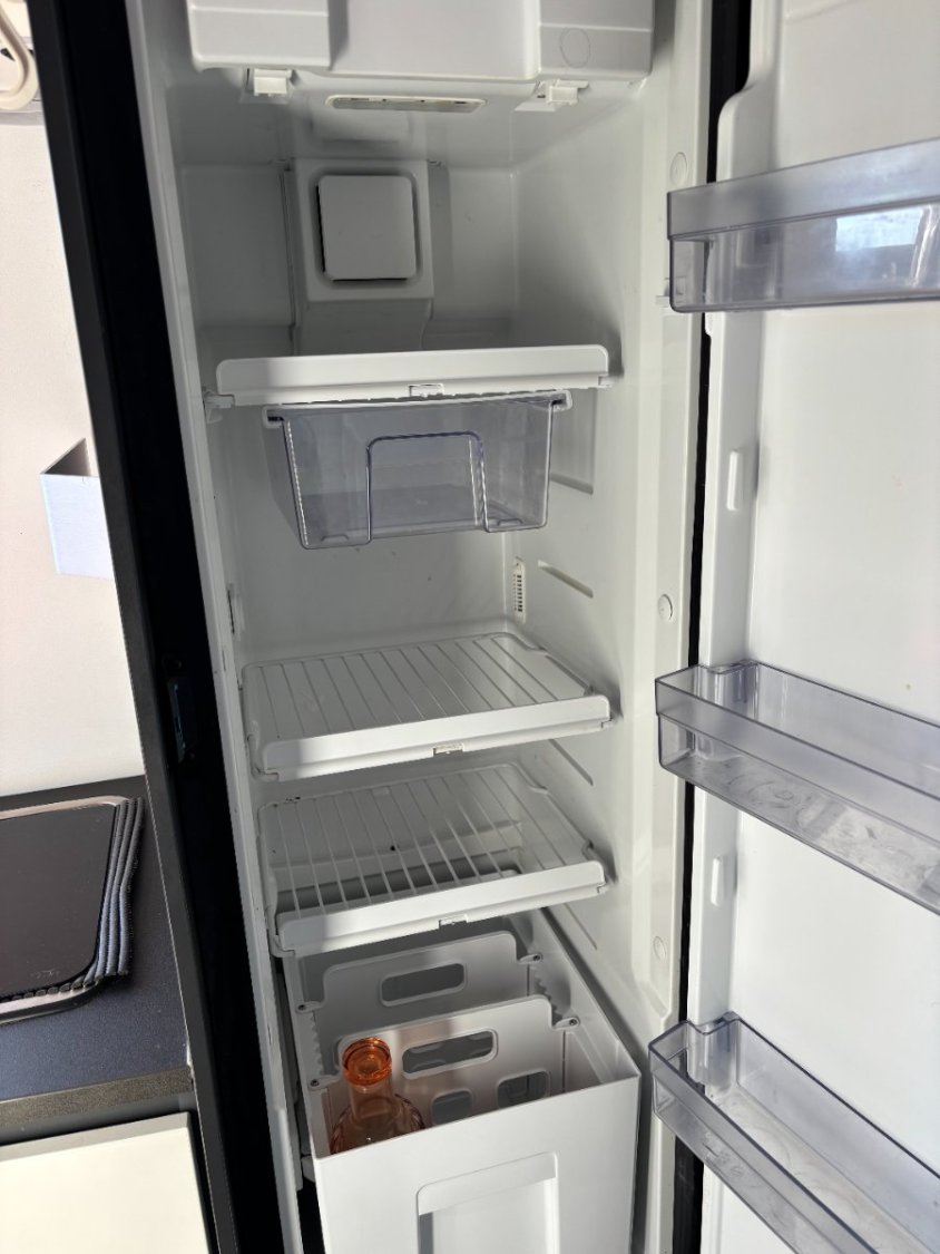 Cuisine équipé avec feux au gaz et réfrigérateur toute hauteur.