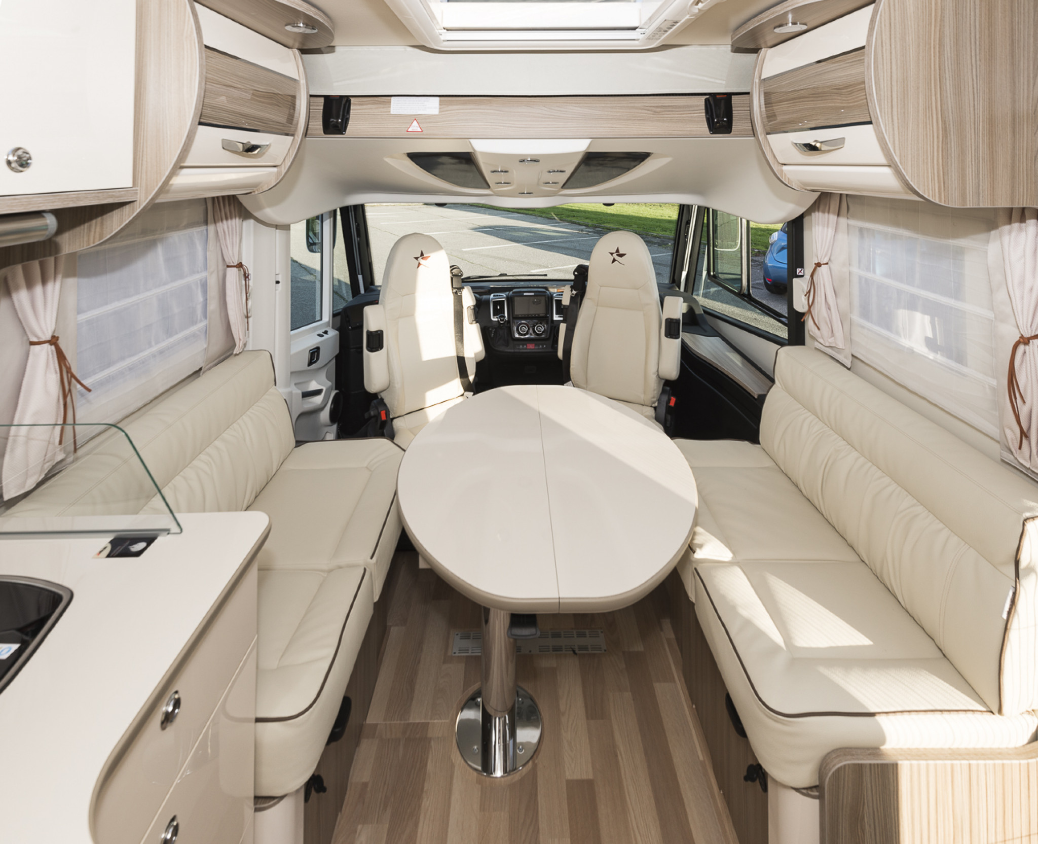 Une implantation toujours aussi plébiscitée, AUTOSTAR voit les choses en grand, maxi lit 160cm, grand salon, salle d’eau transversale, grande soute, en bref, un espace de vie et un confort inégalable, vous allez être surpris !