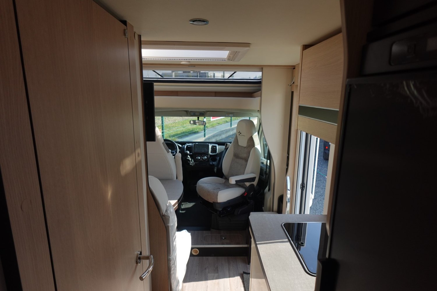 (Caméra de recul avec lignes directionnelles, Gaz Drive protection avec inverseur, Panneau solaire 150 W, Rideaux d’occultation cabine sur glissières, Smart TV 22 pouces, Station multimédia 9 pouces Pioneer, Store extérieur)