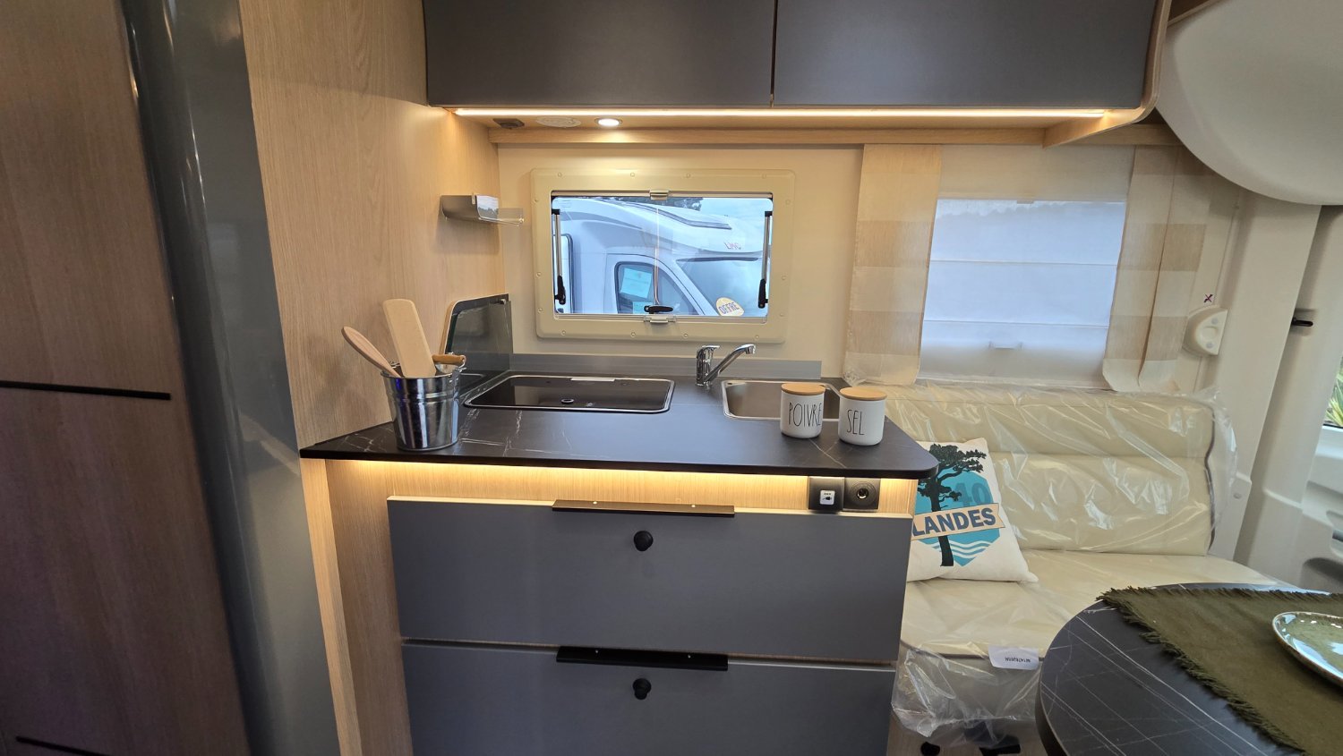 Sur une longueur de 7.39m, ce camping-car propose donc une formule qui allie espace et confort, grâce à des solutions de modularité convaincantes.
