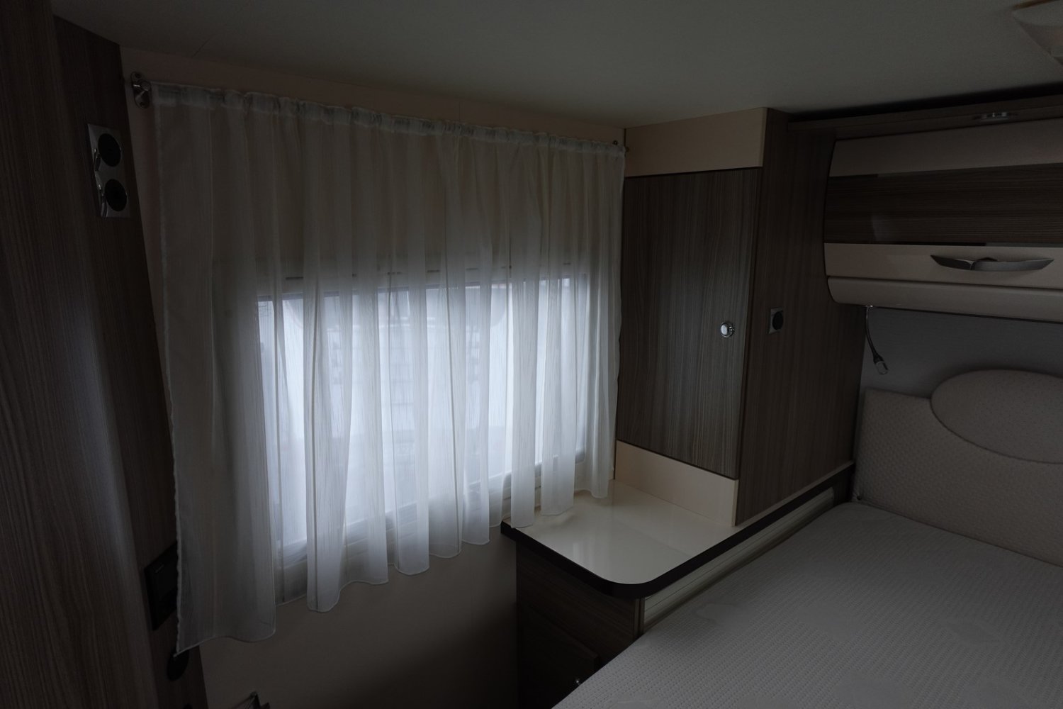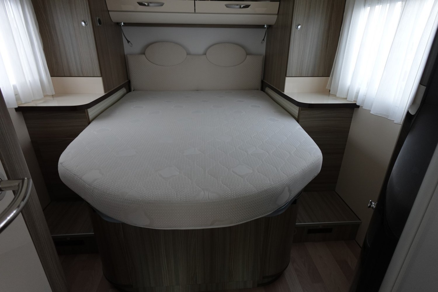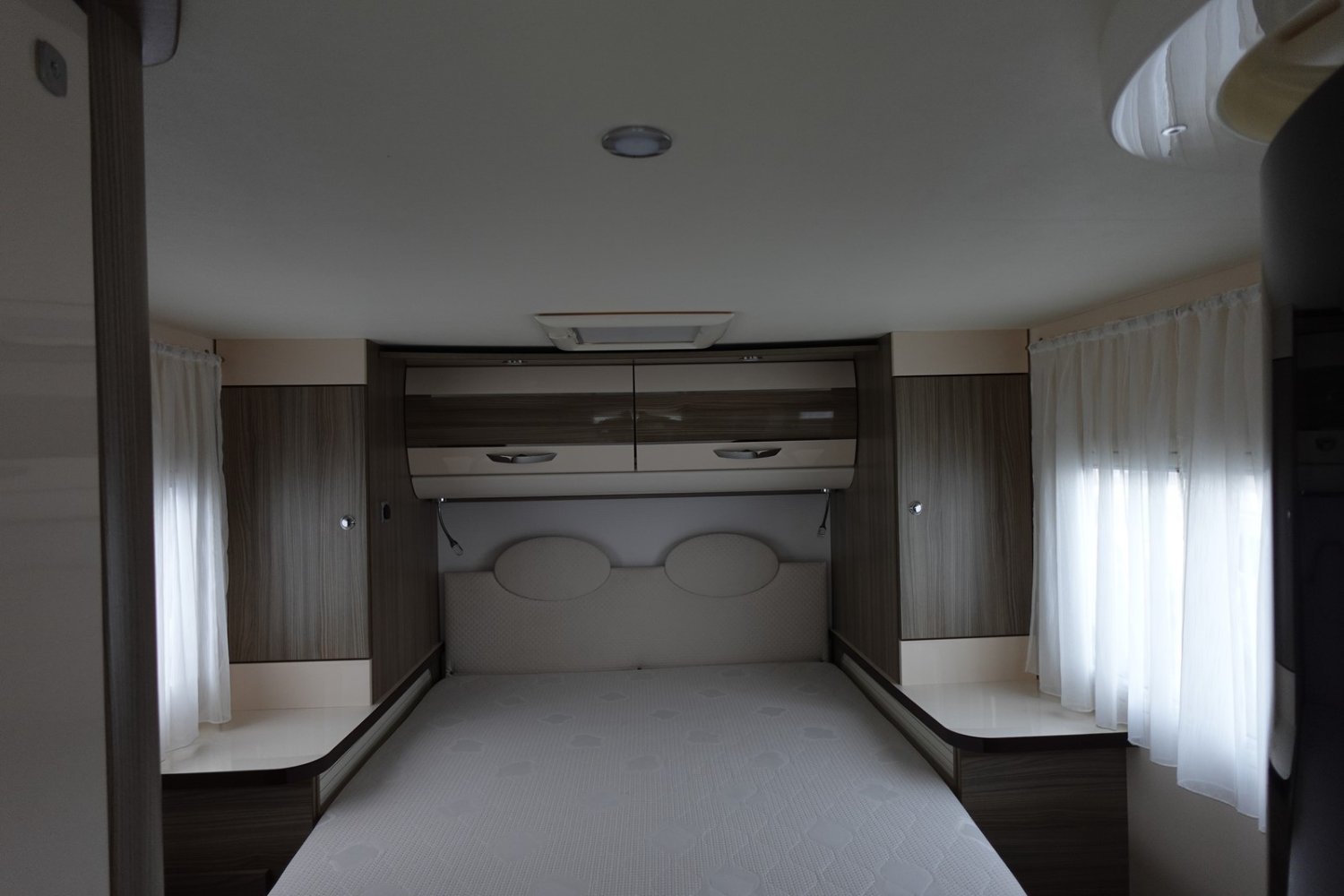 Magnifique intégral comprenant un lit central réglable en hauteur, une douche indépendante de l’espace WC/lavabo, une cuisine en L avec de nombreux rangements, un lit de pavillon et un salon avant panoramique.