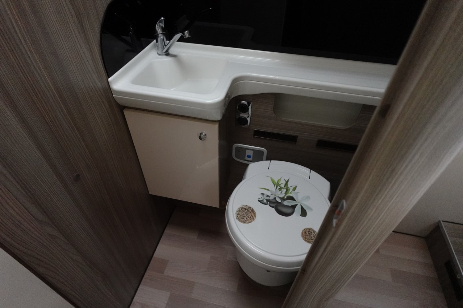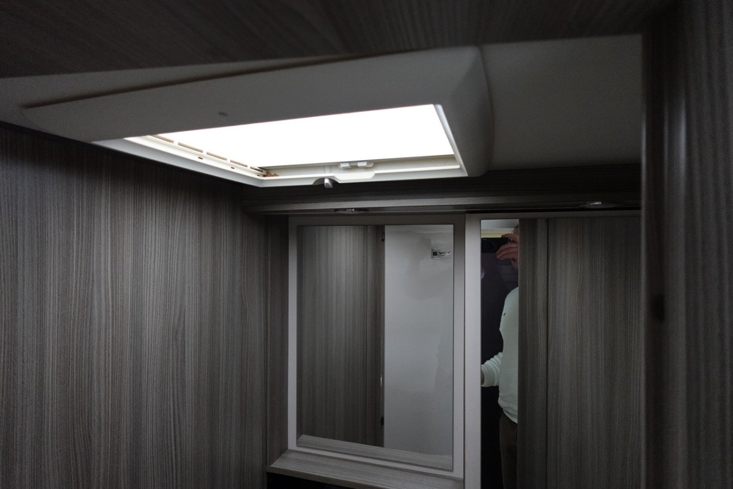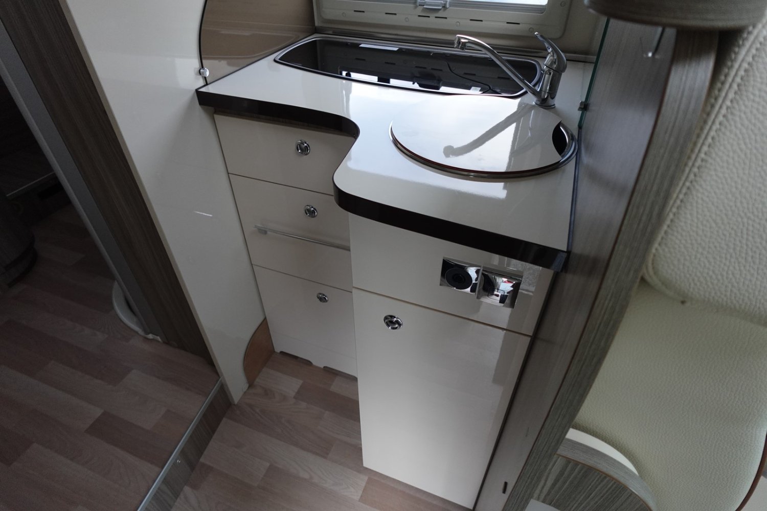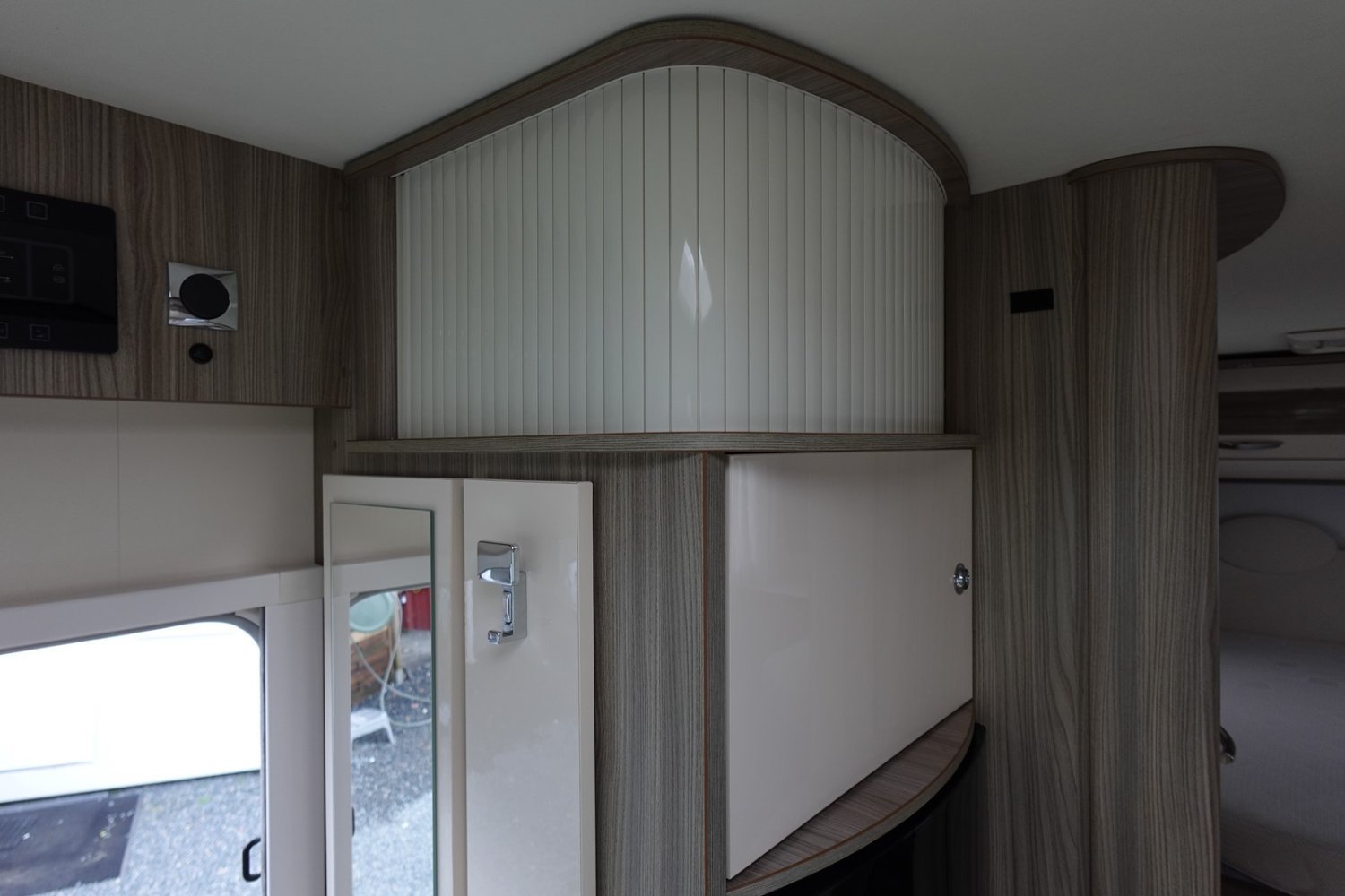 Magnifique intégral comprenant un lit central réglable en hauteur, une douche indépendante de l’espace WC/lavabo, une cuisine en L avec de nombreux rangements, un lit de pavillon et un salon avant panoramique.
