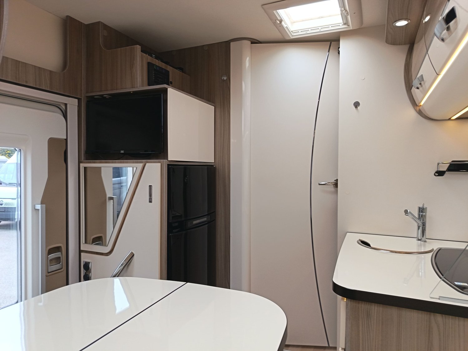 ATTELAGE, TV + ANTENNE SATELLITE AUTO, STORES REMIS, LIT CENTRAL REGLABLE EN HAUTEUR, STORE EXTERIEUR, DOUCHETTE EXTERIEURE, STATION MULTIMEDIA ET CAMERA DE RECUL, BANQUETTE FACE FACE