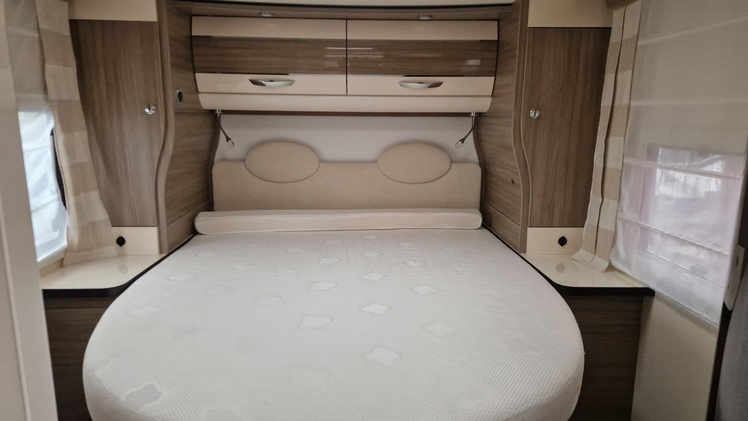 STORE EXTERIEUR, ATTELAGE, TV + SATELLITE AUTO, PANNEAU SOLAIRE, LIT PAVILLON 2 PERSONNES, LIT CENTRAL REGLABLE EN HAUTEUR, DOUCHETTE EXTERIEURE, STATION MULTIMEDIA ET CAMERA DE RECUL, BANQUETTE FACE FACE, STORES REMIS