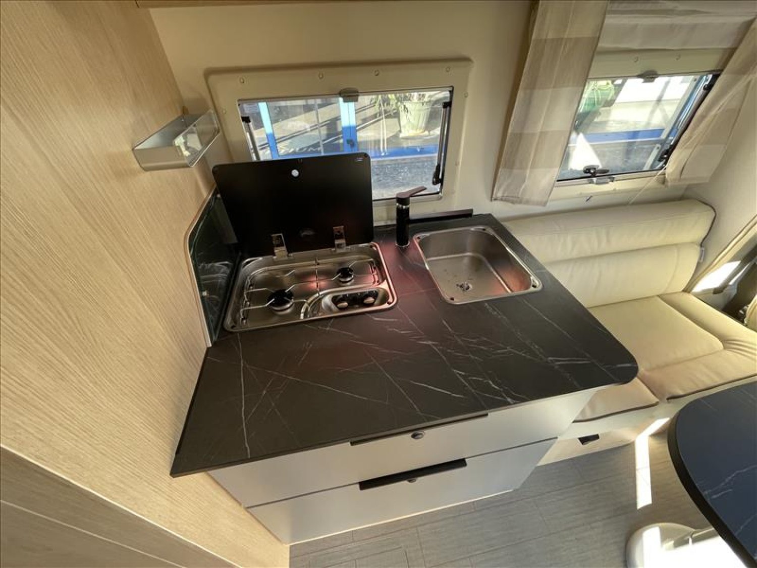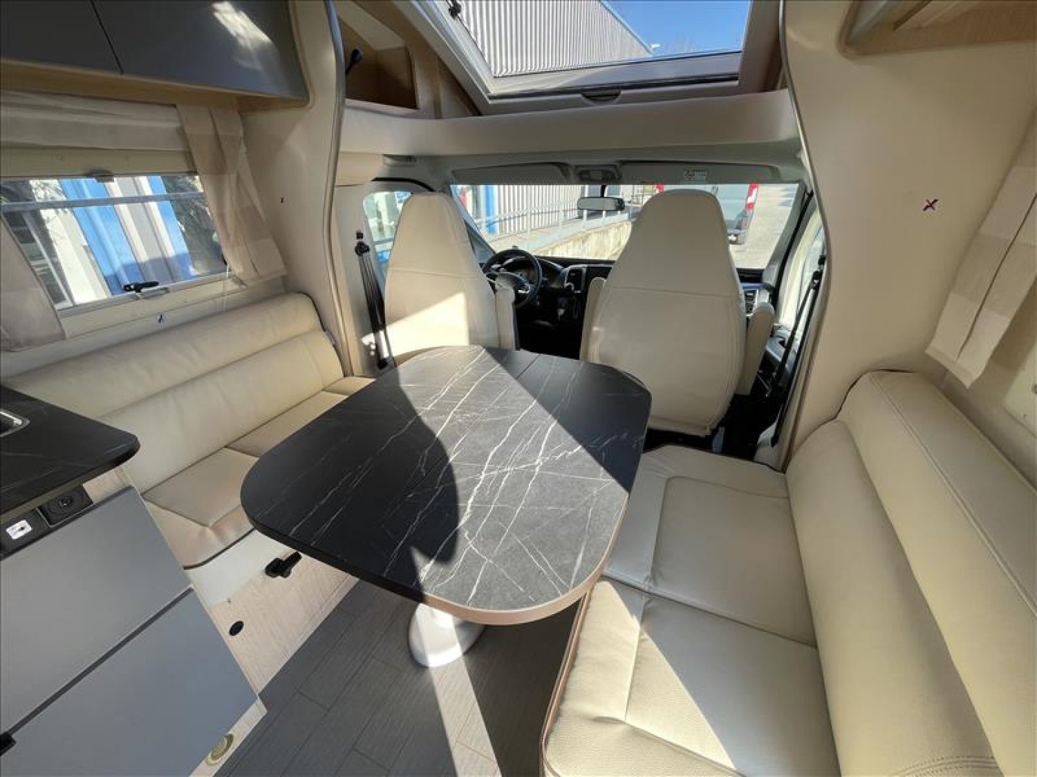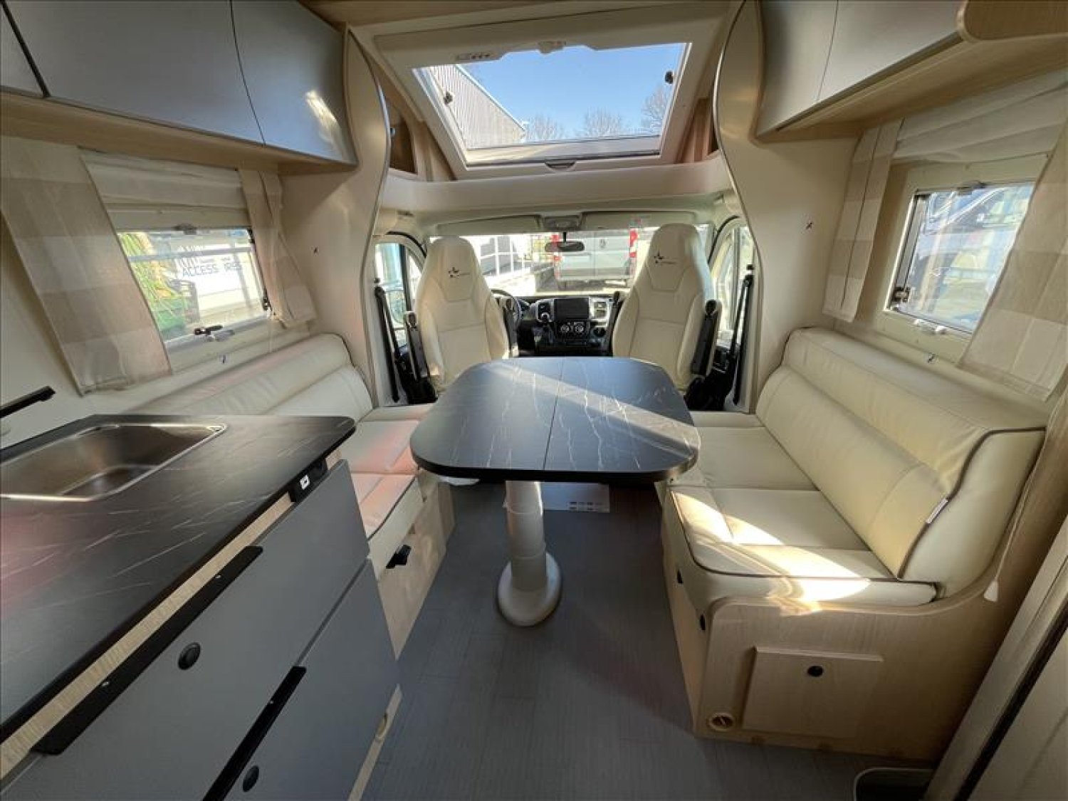 Salon face à face, CHAUDIERE TRUMA 4000, Volant multifonction, Sièges pivotants, 2 PLACES ISOFIX, CHAUFFAGE AIR PULSE, LIT CENTRAL 150 * 190, Double plancher, Plancher plain pied, Caméra de recul, REFRIGERATEUR 141L, RESERVOIR CARBURANT 90L, WC et douche séparés, REGULATEUR ET LIMITEUR DE VITESSE, MARCHE PIEDS ELECTRIQUE, Support TV posé dans chambre+prises