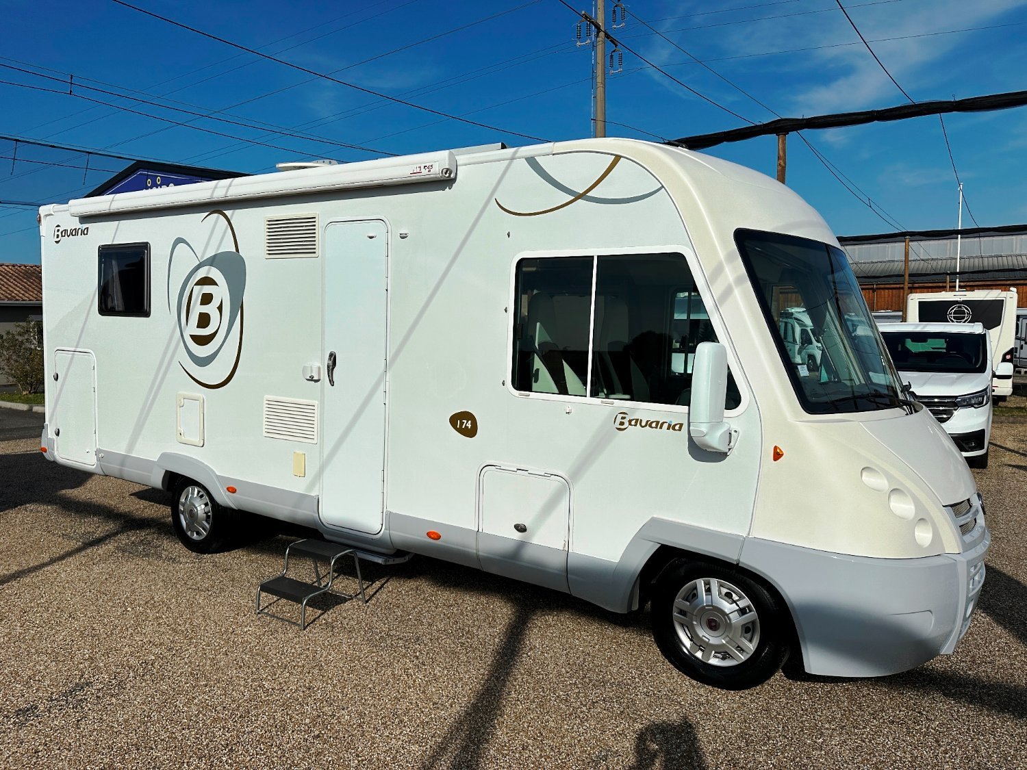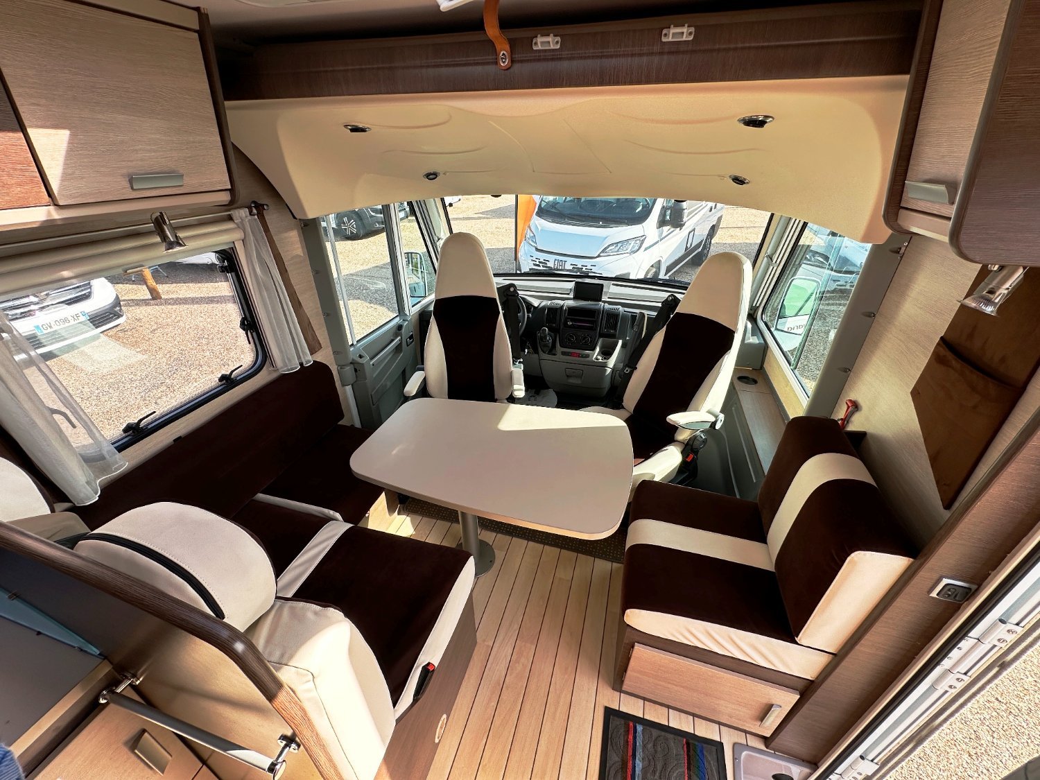 Intégral Bavaria, lit central, vaste soute garage (plusieurs vélos adultes), 4 couchages, salle de bain avec grande douche entièrement séparée, fermeture chambre arrière, cuisine spacieuse et toute équipée, vaste salon avant avec sièges pivotant et table centrale + lit pavillon en cabine pour deux adultes.