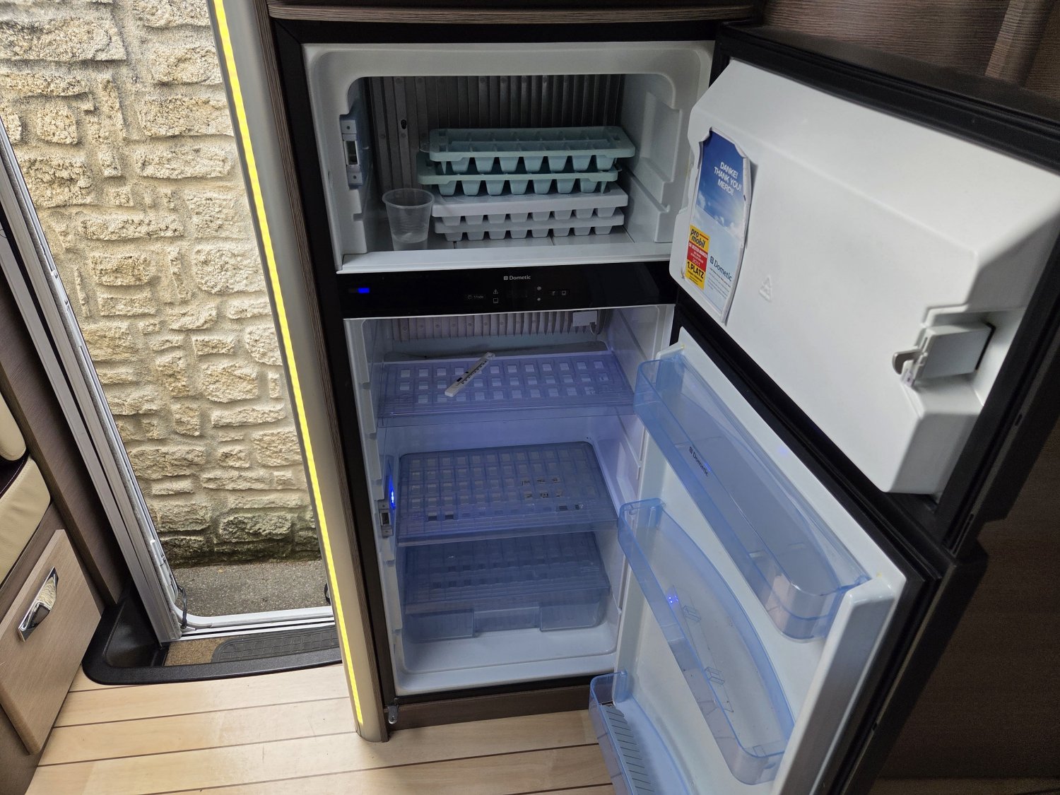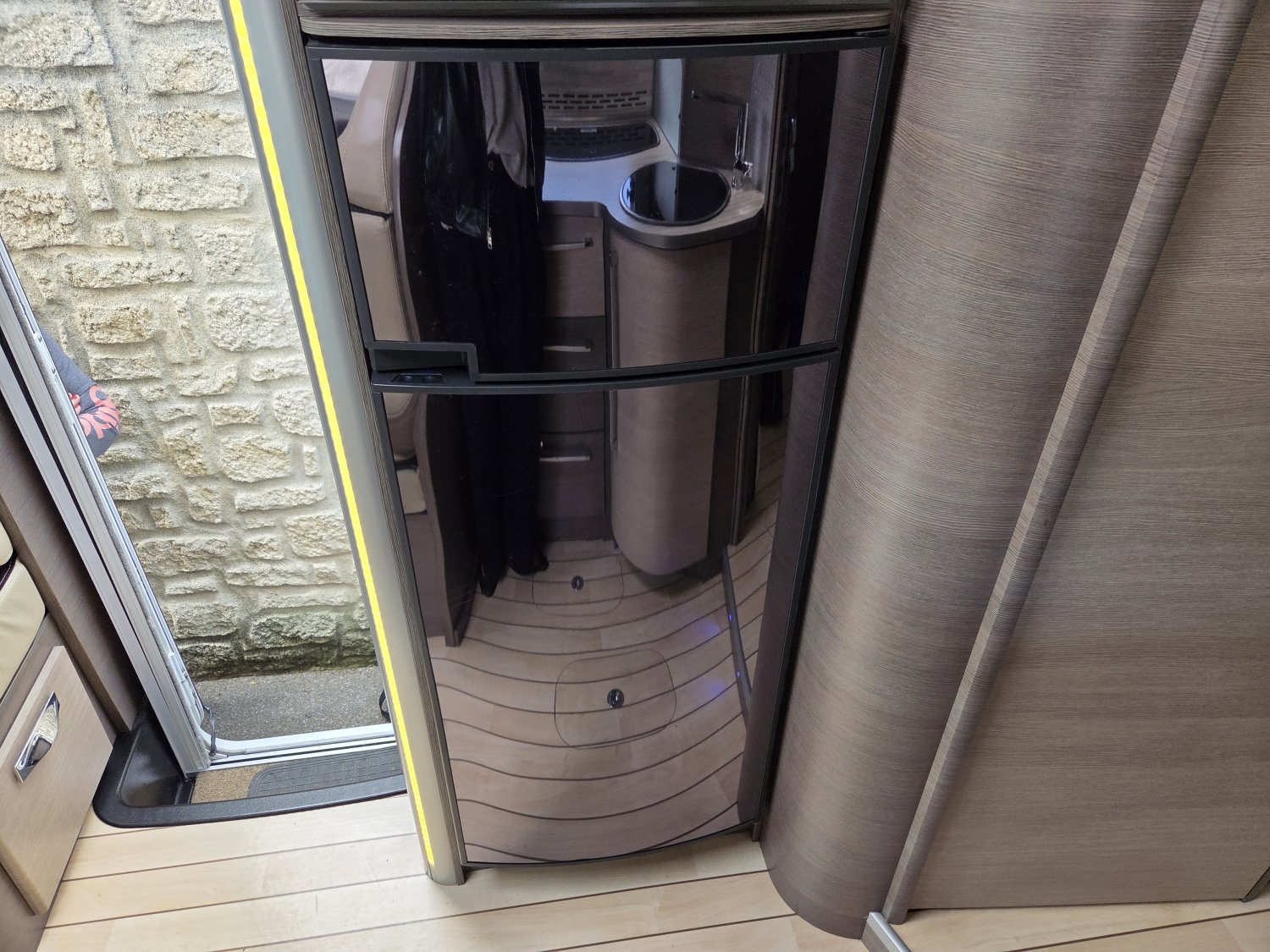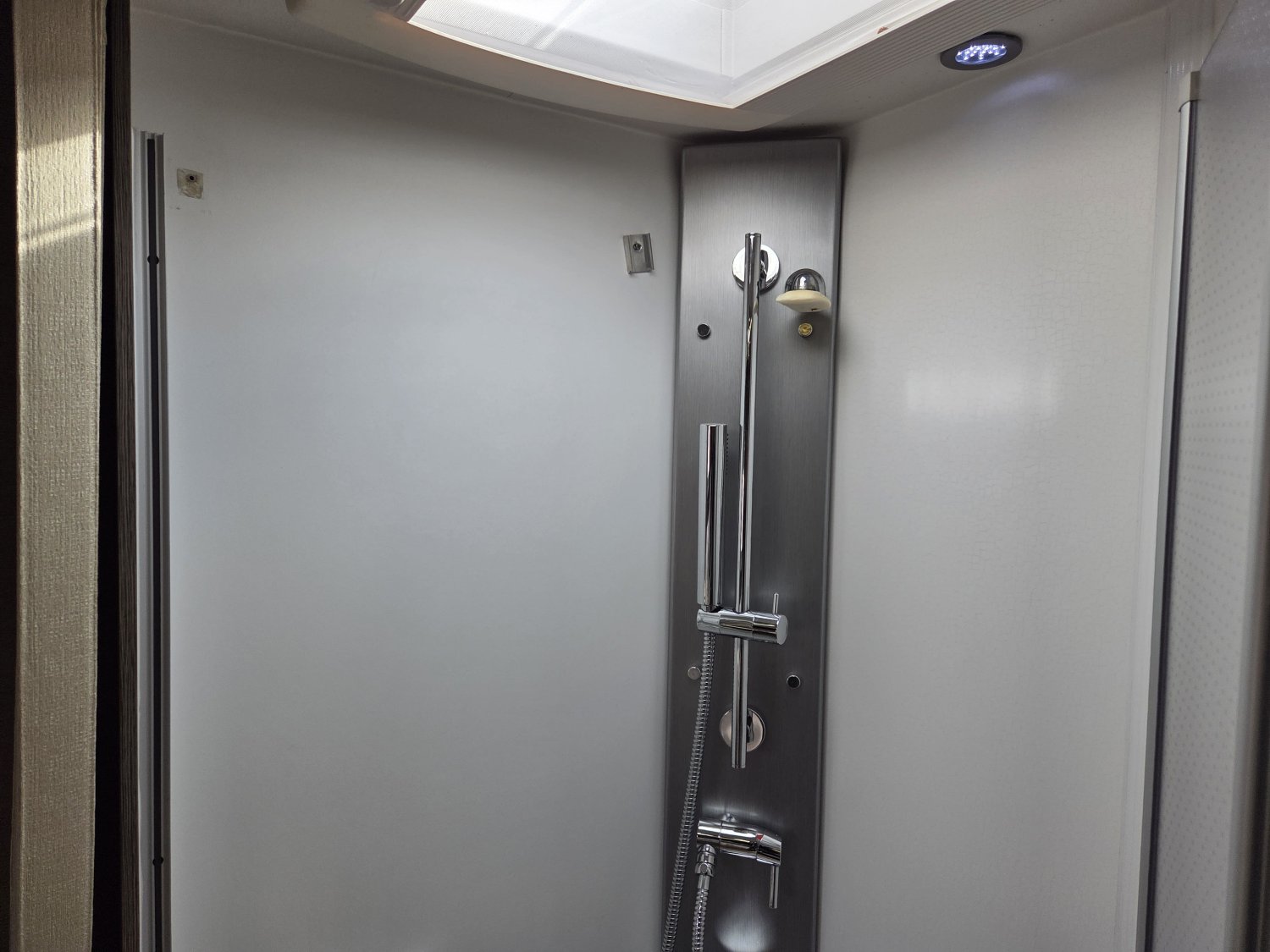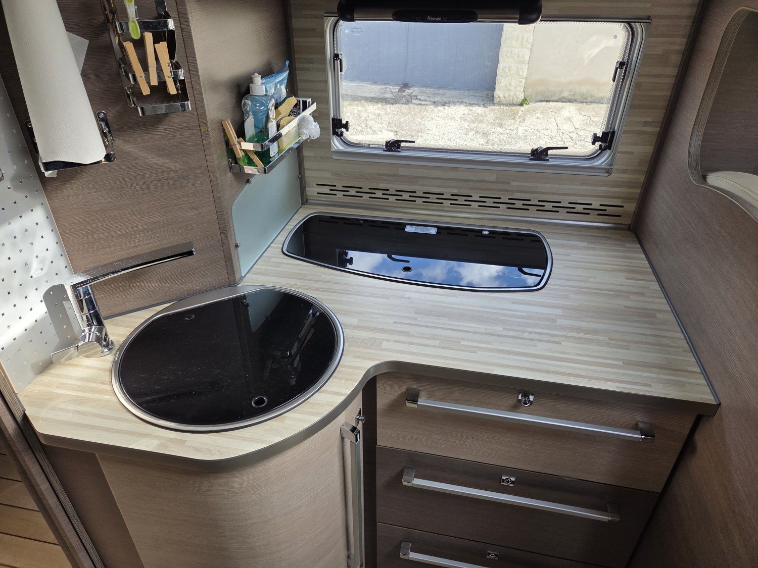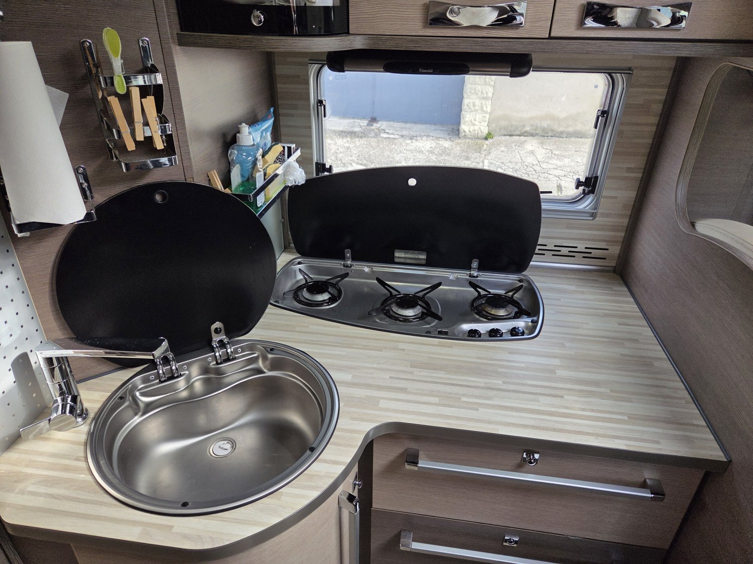 Son agencement spacieux et lumineux propose un grand salon convivial, une cuisine fonctionnelle avec de nombreux rangements et une salle d’eau confortable avec douche indépendante. À l’arrière, vous profitez d’un lit central transversal offrant un couchage confortable et facile d’accès, complété par un lit pavillon deux places à l’avant, permettant d’accueillir jusqu’à quatre personnes.