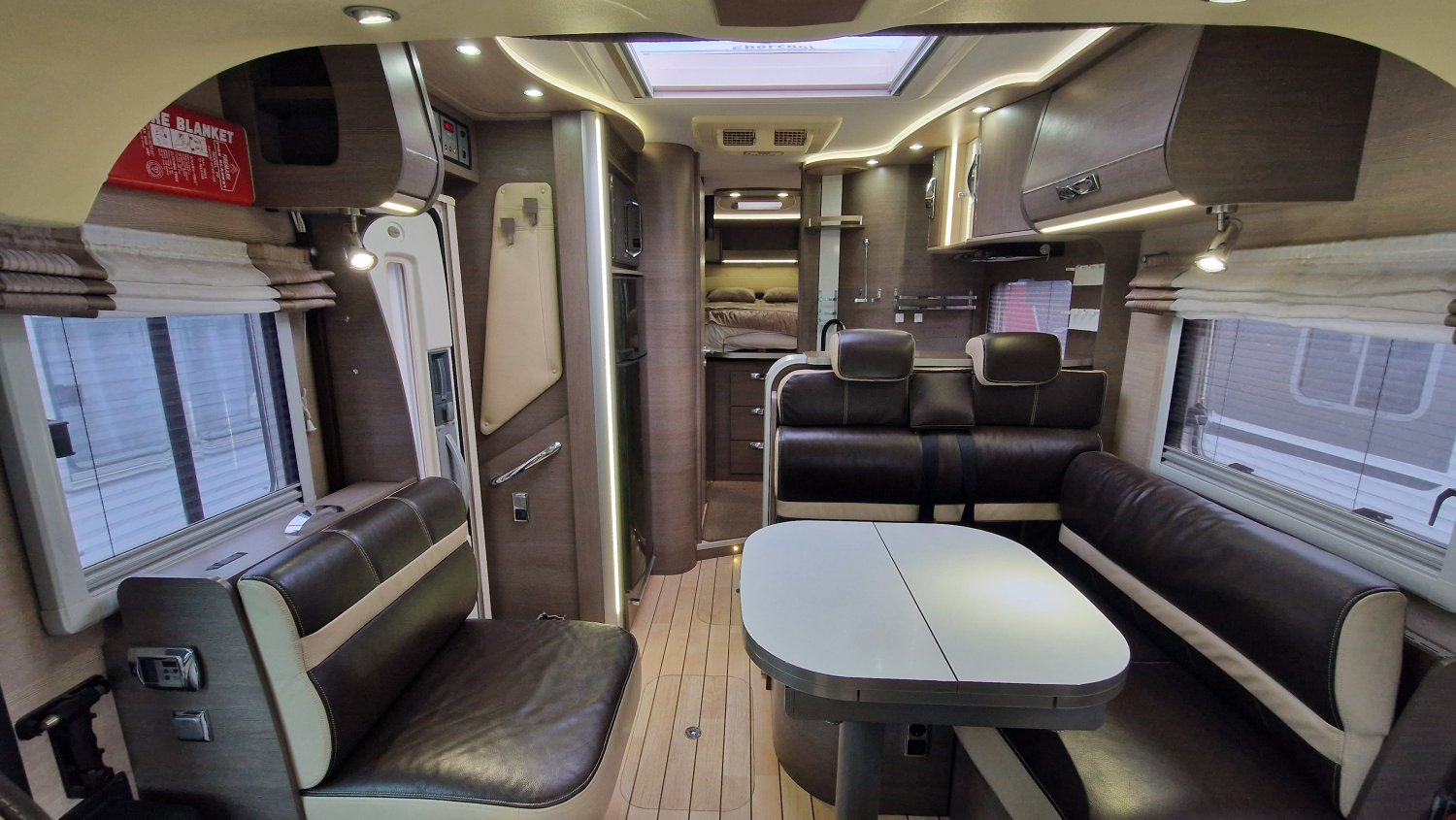 CHAUFFAGE CENTRAL ALDE, STORE EXTERIEUR 5M, GAZINIERE 3 FEUX, TIROIRS FERMETURE RALENTIE, PORTE SEPARATRICE, SELLERIE CUIR, DOUCHETTE DANS SOUTE, DOUCHE ET WC SEPARES, ECLAIRAGE LED, HOTTE ASPIRANTE, MICRO ONDES, MOQUETTE CABINE, MOUSTIQUAIRE DE PORTE CELLULE, RAFRAICHISSEUR D' AIR, REFRIGERATEUR TRI MIX, RESERVOIRS D EAUX ISOLES ET CHAUFFES, STORES PLISSES DE CABINE, VOLET AVANT ELECTRIQUE, VOLET EXTERIEUR ISOTHERME, SIEGE AGUTI, LANTERNEAU PANORAMIQUE, DOUCHETTE EXTERIEURE EAU CHAUDE ET FROIDE
