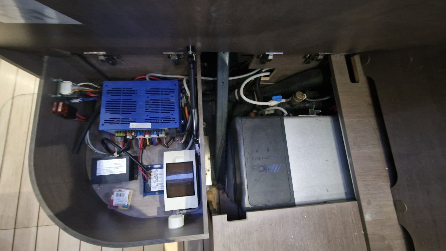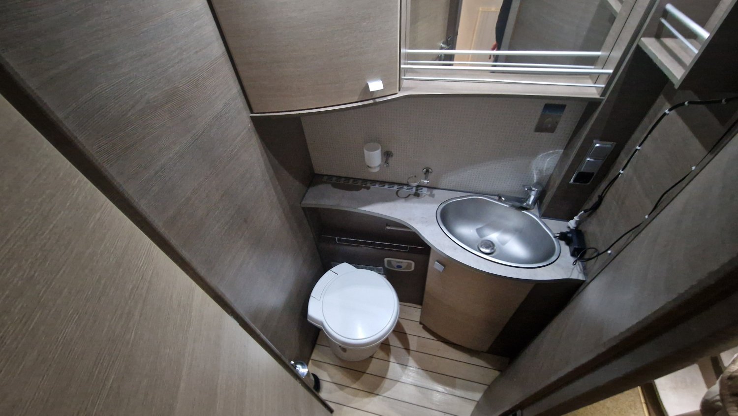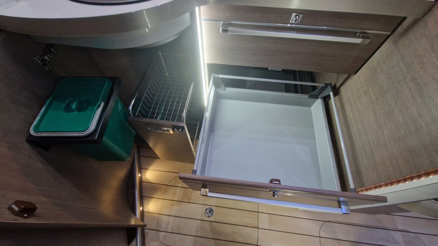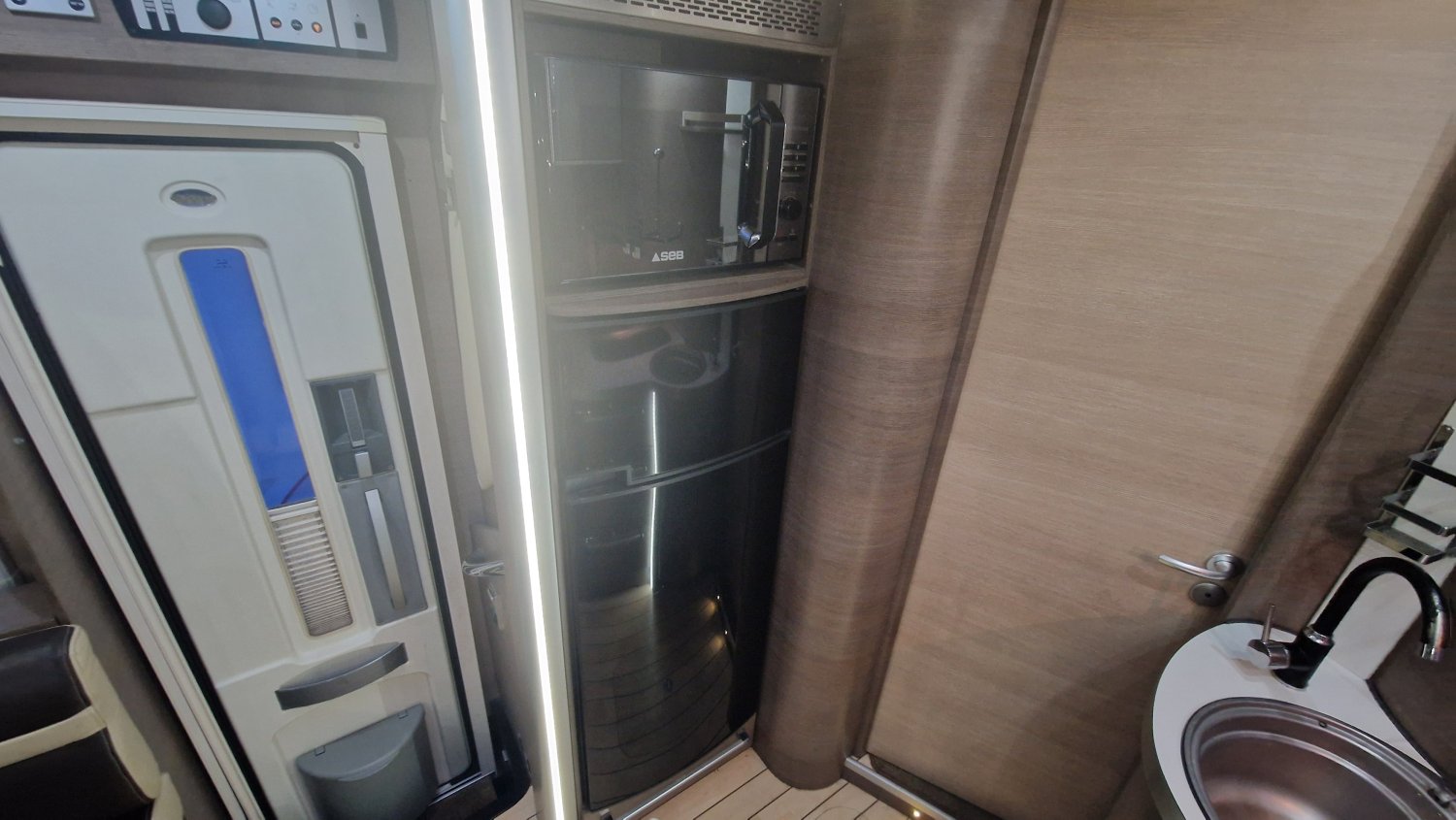 Montez à bord et laissez-vous transporter en couple ou en famille dans un environnement harmonieux et haut de gamme où tout est pensé comme un véritable appartement : confort de couchage avec lit central à sommier rétractable et lit de pavillon escamotable, cuisine ergonomique toute équipée avec de nombreux rangements, vaste salon en cuir à vue panoramique convivial et lumineux, et grand espace balnéo avec douche et cabinet de toilettes indépendants.