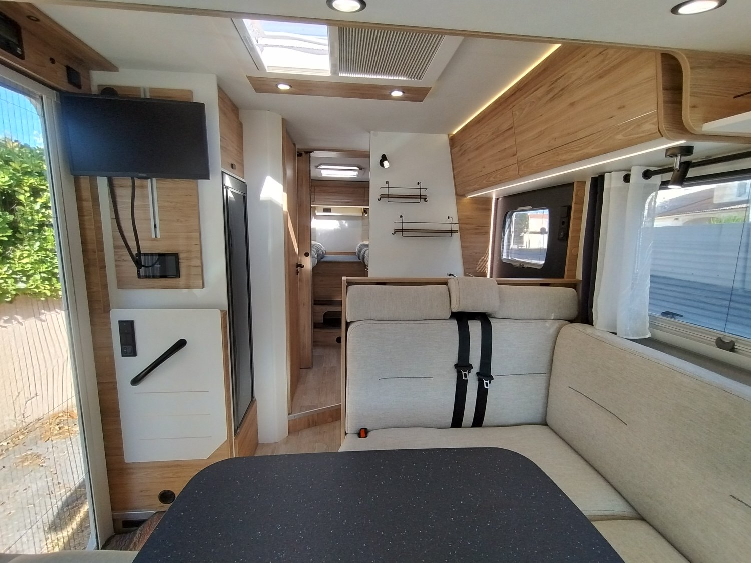 Au-delà de son look et de la luminosité intérieur omniprésente ce modèle sera vous séduire aussi grâce à sa grande soute traversante pour embarquer aisément tous vos équipements et aux multiples rangements à disposition dans l’espace de vie.