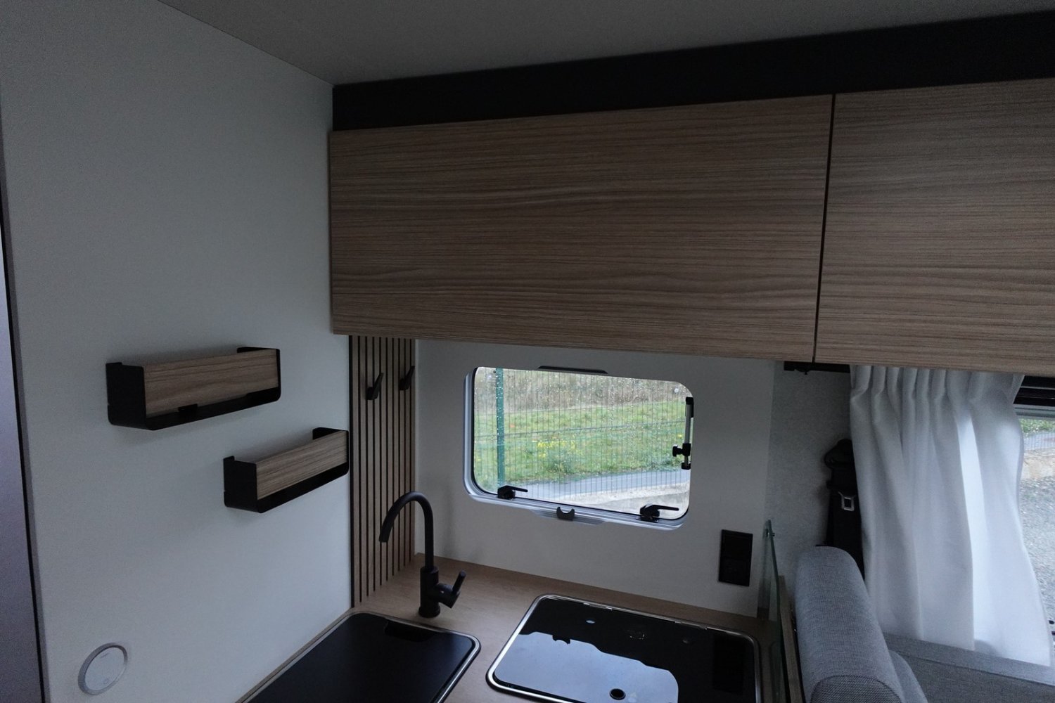 (Motorisation 140 CV, Boite automatique, Batterie Lithium 200 Ah, Convertisseur pur sinus 2000 W, 2 Panneaux solaire 100 W haute performance, Booster pour une charge rapide de la batterie, Chauffage hybride Truma D 6 E, Tiroir bas de caisse, Douchette eau froide/eau chaude dans la soute arrière, Eclairage + rails d’arrimage + prise 220 V dans la soute, Porte serviettes repliable, Poubelle et accessoires pour compartimenter, Eclairage dans la penderie de la chambre, Sellerie bi-ton et bi-matière simili et tissu Sand, Ambiance Pyla)