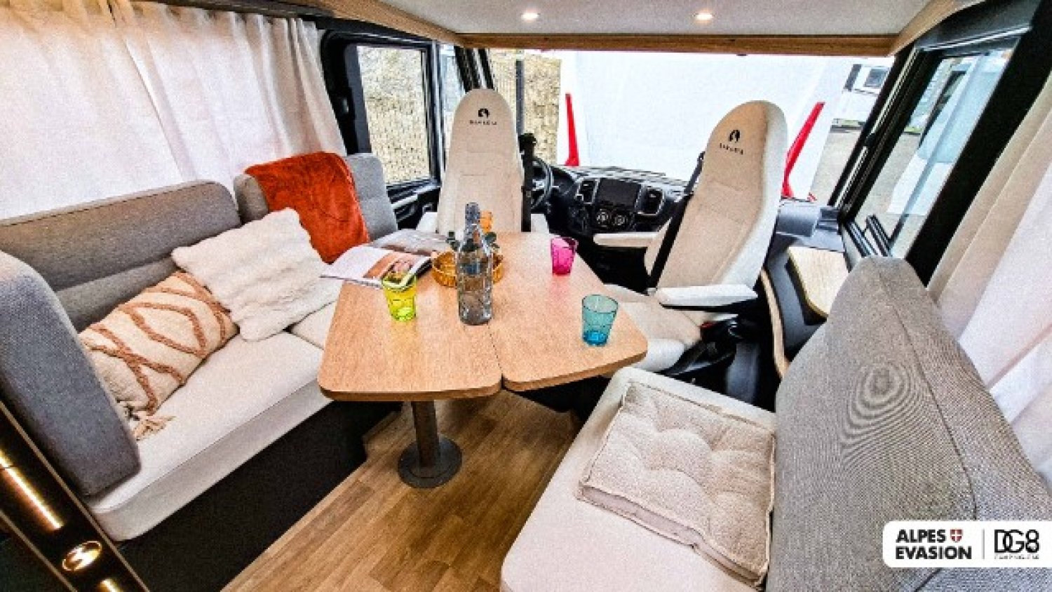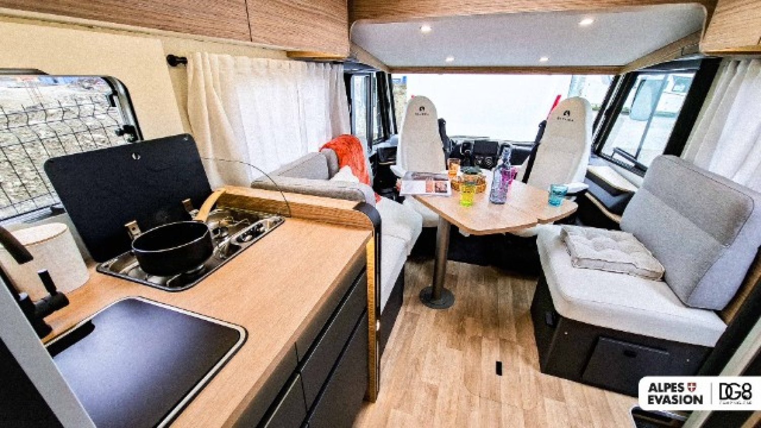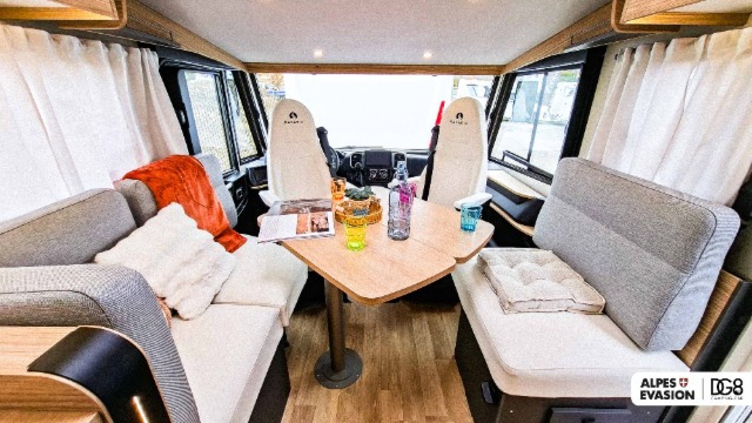 AUDIO 9 GPS ET CAMERA DE RECUL, BATTERIE LITHIUM 200 AH, CONVERTISSEUR 2000 W, DOUCHETTE EXTERIEURE, MODELE NEUF D EXPOSITION, PANNEAU SOLAIRE 100 W X2, TRUMA COMBI DIESEL 6 E