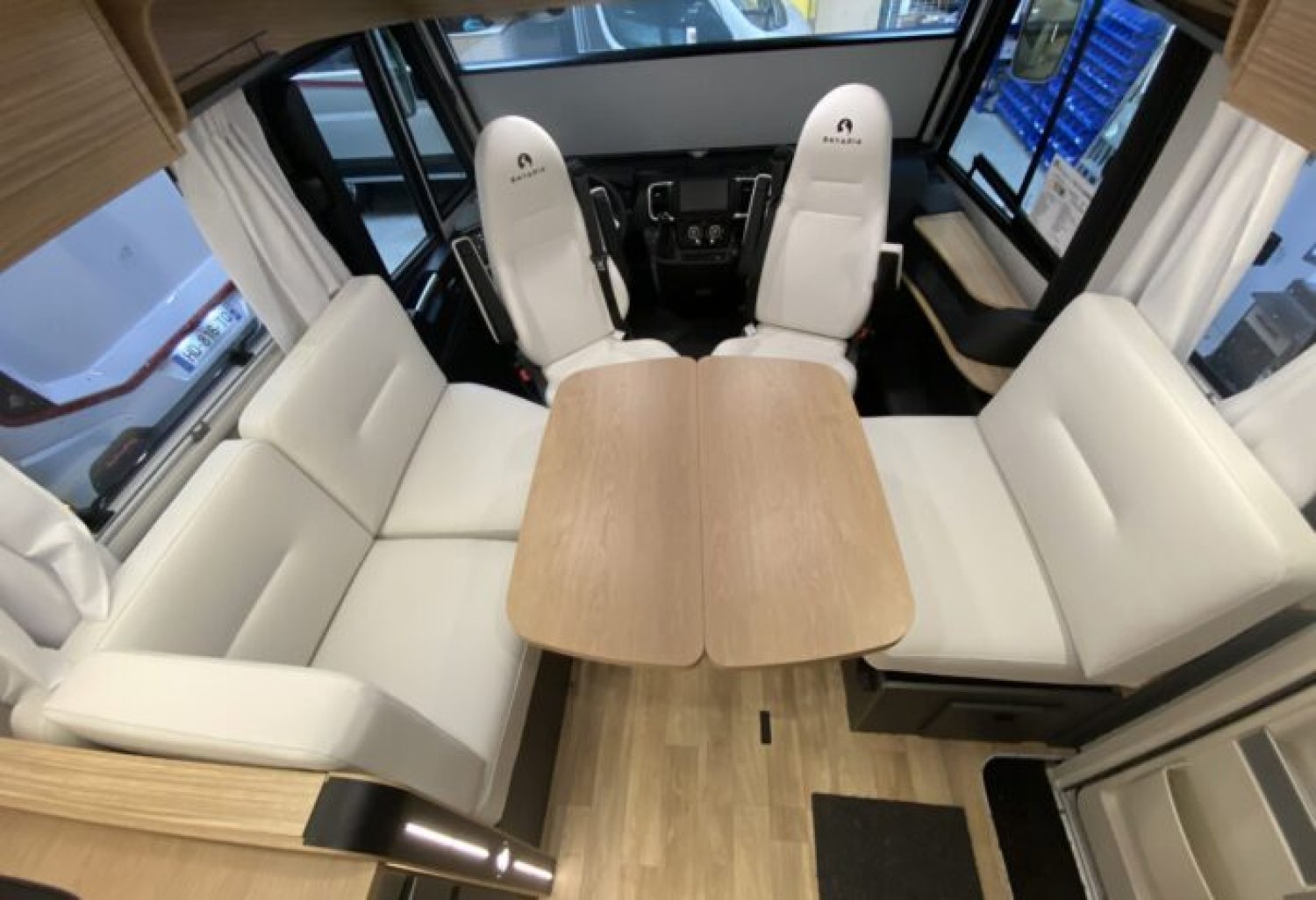 Banquettes face à face pour un espace de vie spacieux et convivial