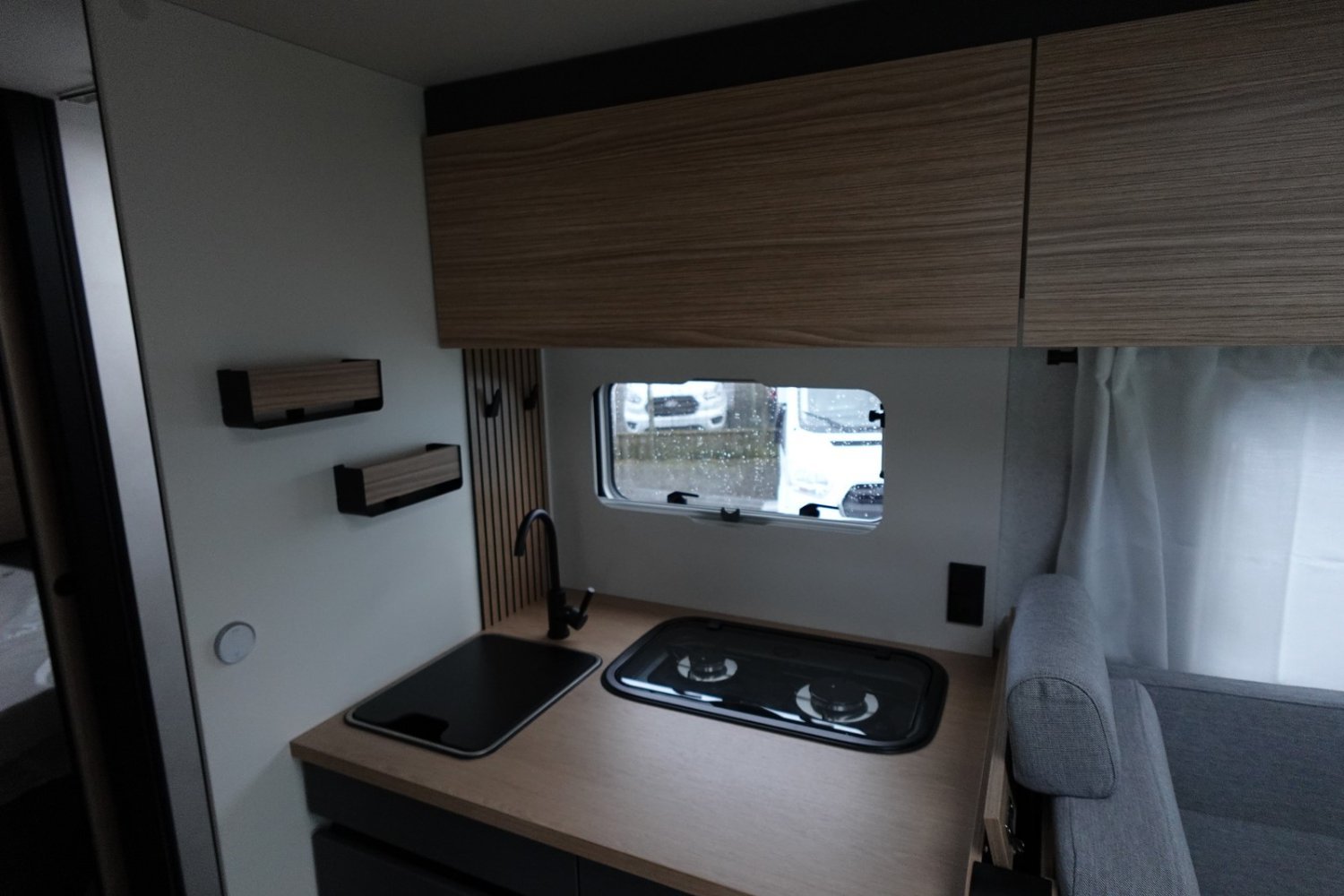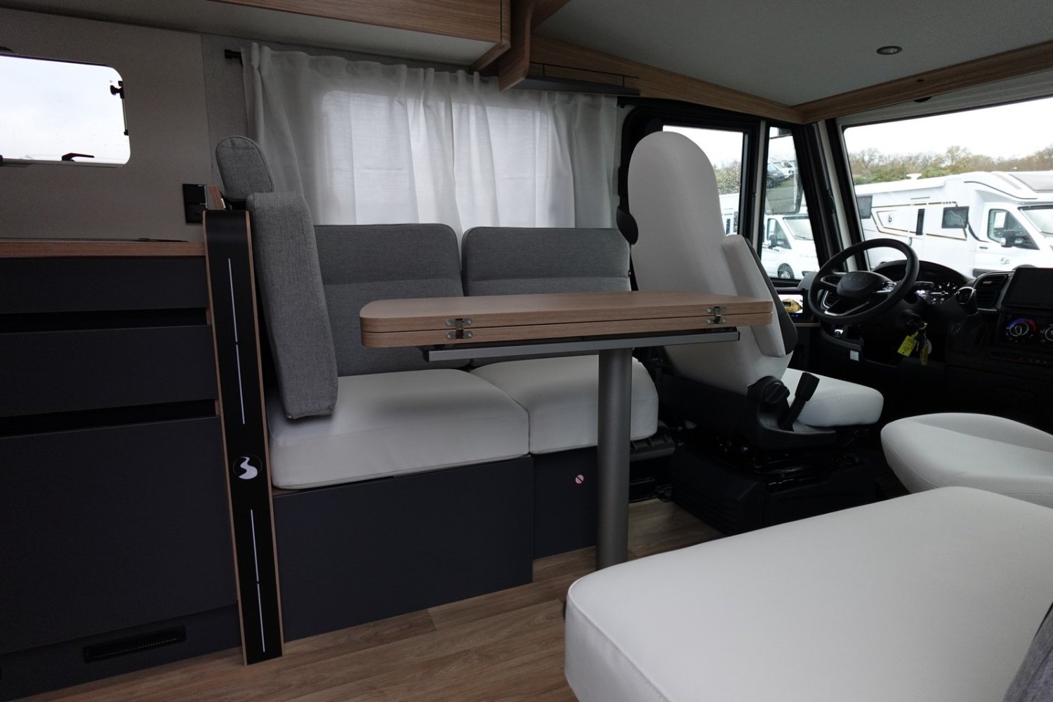 (Motorisation 140 CV, Boite automatique, Batterie Lithium 200 Ah, Convertisseur pur sinus 2000 W, 2 Panneaux solaire 100 W haute performance, Booster pour une charge rapide de la batterie, Chauffage hybride Truma D 6 E, Tiroir bas de caisse, Douchette eau froide/eau chaude dans la soute arrière, Eclairage + rails d’arrimage + prise 220 V dans la soute, Porte serviettes repliable, Poubelle et accessoires pour compartimenter, Eclairage dans la penderie de la chambre, Sellerie bi-ton et bi-matière simili et tissu Sand, Ambiance Pyla)