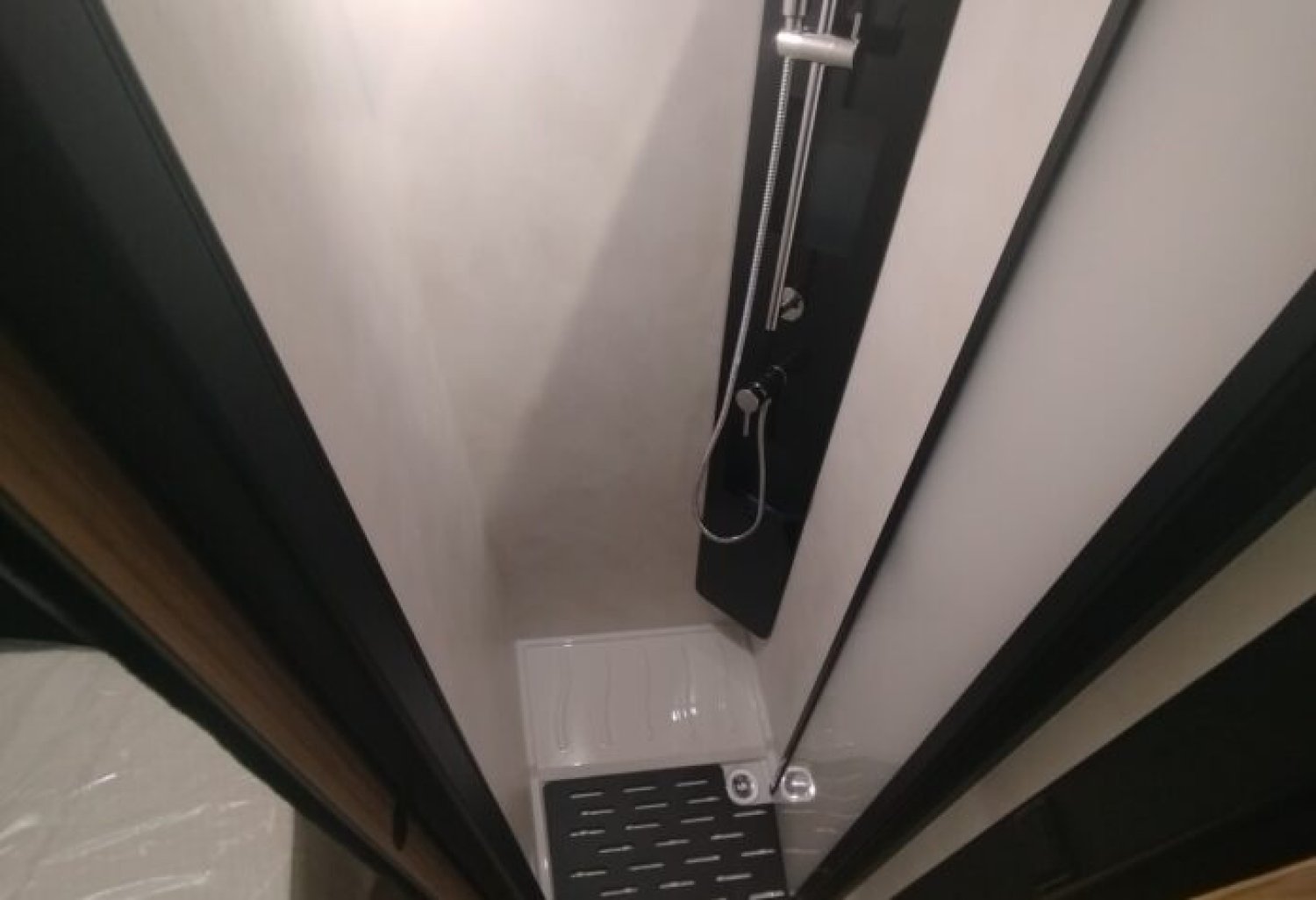 • Douchette eau froide/chaude dans la soute arrière • Porte-serviettes repliable