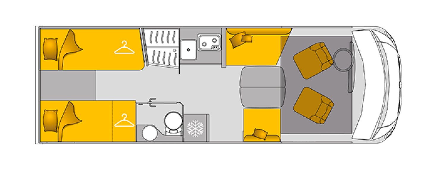 Le Bavaria I720FGJ Nomade est un camping-car intégral au design moderne, pensé pour offrir un cadre de vie confortable et fonctionnel. Il dispose d’un espace intérieur bien agencé et d’équipements complets pour profiter pleinement de chaque voyage.