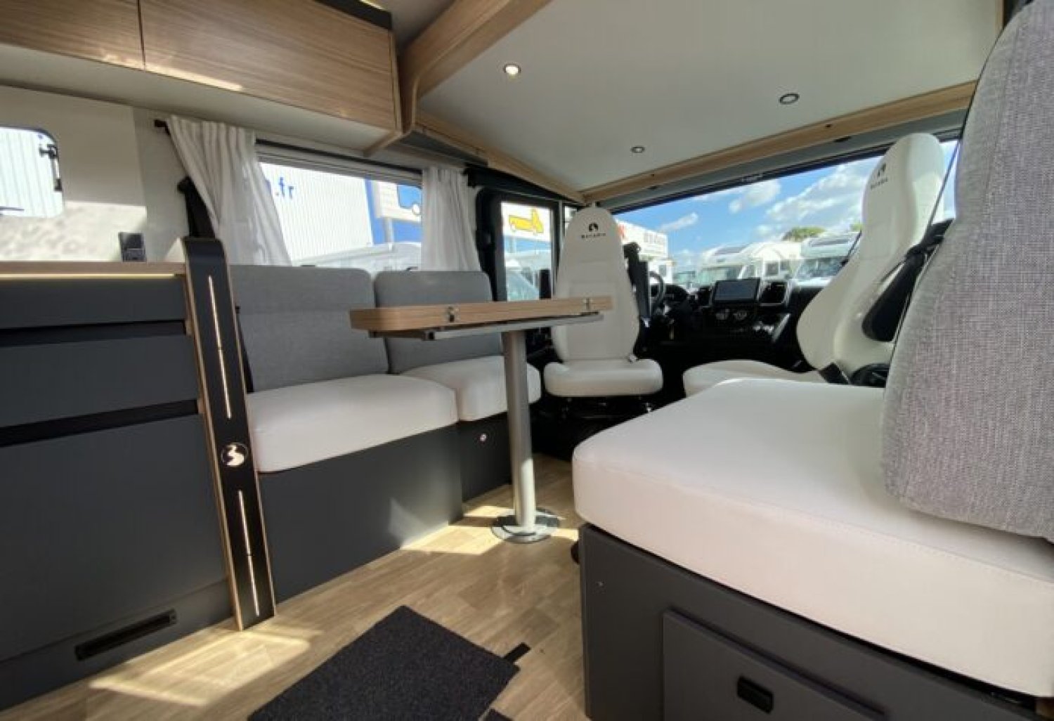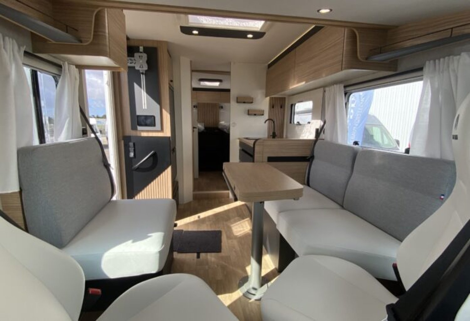 Laissez-vous séduire par ce superbe camping-car intégral offrant un agencement idéal pour le confort au quotidien :