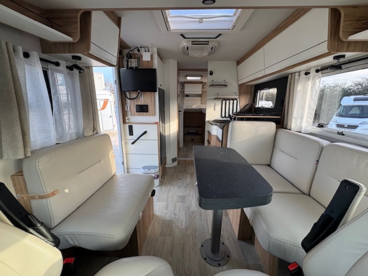 Alarme, Antenne WIFI, Anti-brouillard, Boite automatique, Caméra de recul, Climatisation cabine, Climatisation cellule, Double plancher, Eclairage extérieur, Fermeture centralisée, Inverseur gaz automatique Duo Control, Jantes alliage , Marche pied électrique, Moustiquaire de porte cellule, Panneau solaire, Porte cellule vitrée, Réfrigérateur, congélateur, Salon face/face, Store extérieur, Stores plissés cabine, Traction +, TV