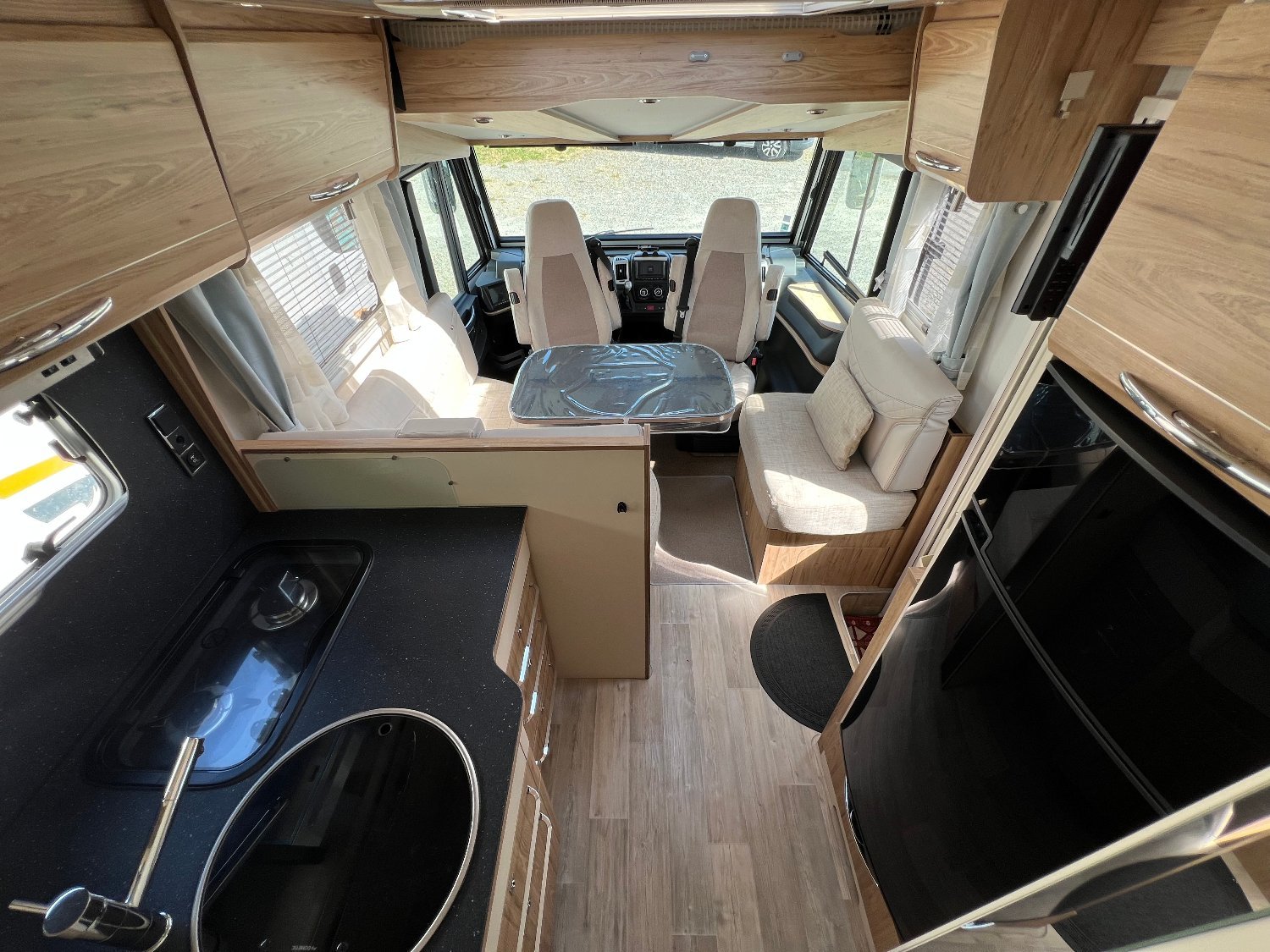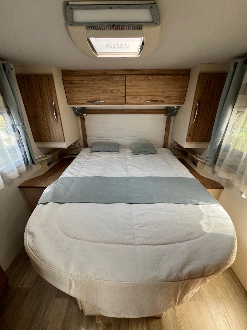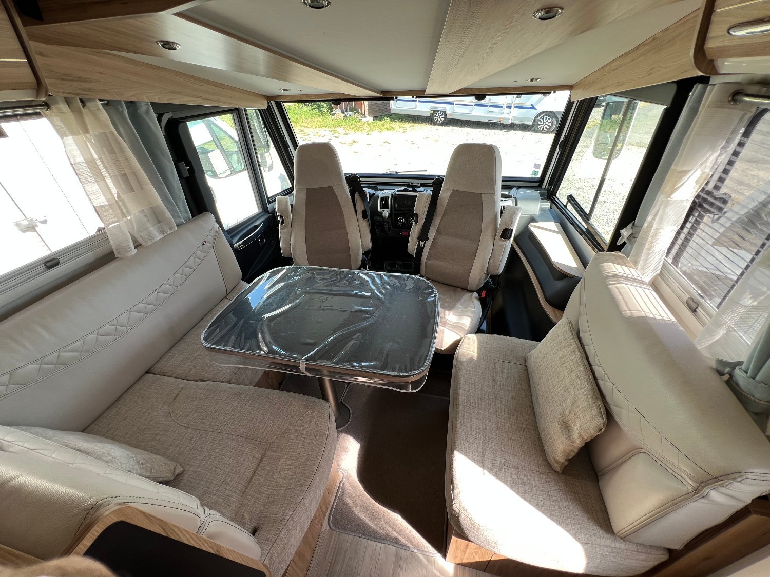 OPTIONS : suspensions à air + attelage + antenne satellite automatique + TV + porte-vélos + store extérieur + panneau solaire + intérieur cuir protégé par des housses