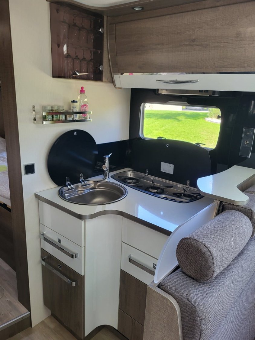 Salle d'eau arrière avec douche séparée (grande surface de déplacement à l'intérieur du véhicule)