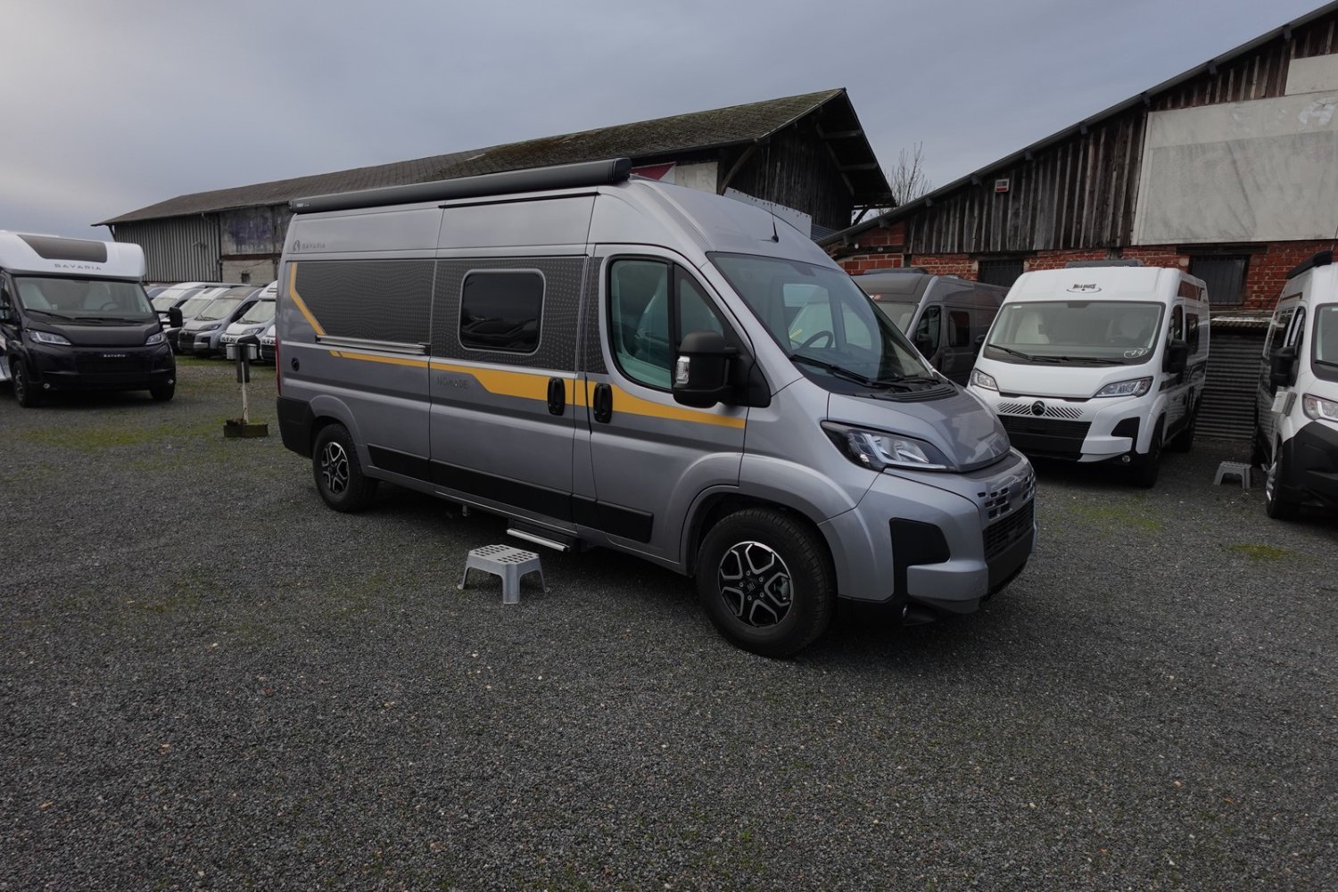 (Motorisation 140 CV, Boite automatique, Peinture de carrosserie métallisée Gris Artense, Store extérieur, Sellerie Shadow simili cuir, Douchette eau froide/eau chaude dans la soute arrière, Occultations de la cabine coulissantes, Niche dégagée)