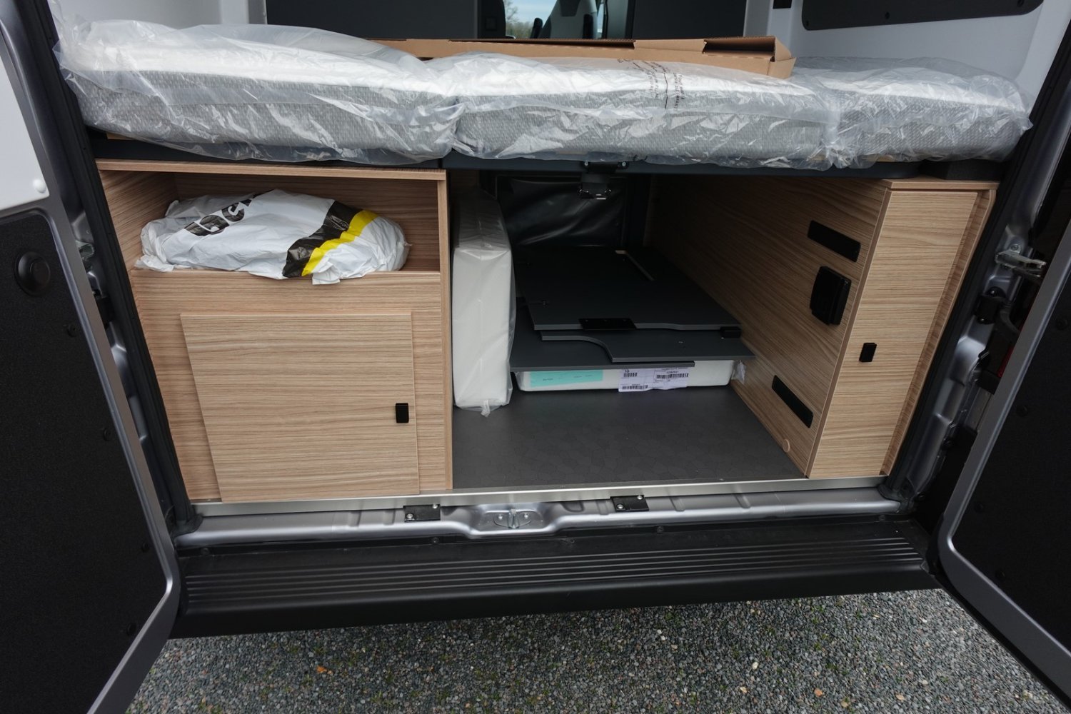 Le fourgon aménagé Bavaria K600G offre une cuisine fonctionnelle avec cinq tiroirs compartimentés et une poubelle intégrée, permettant un rangement organisé et pratique. Son grand salon peut accueillir confortablement jusqu'à quatre personnes, offrant un espace convivial pour se détendre et socialiser. De plus, l'espace douche est spacieux, offrant confort et commodité lors de l'hygiène quotidienne. Enfin, le lit garage est équipé d'un matelas confortable et d'un sommier à lattes, assurant un repos réparateur pour une bonne nuit de sommeil.