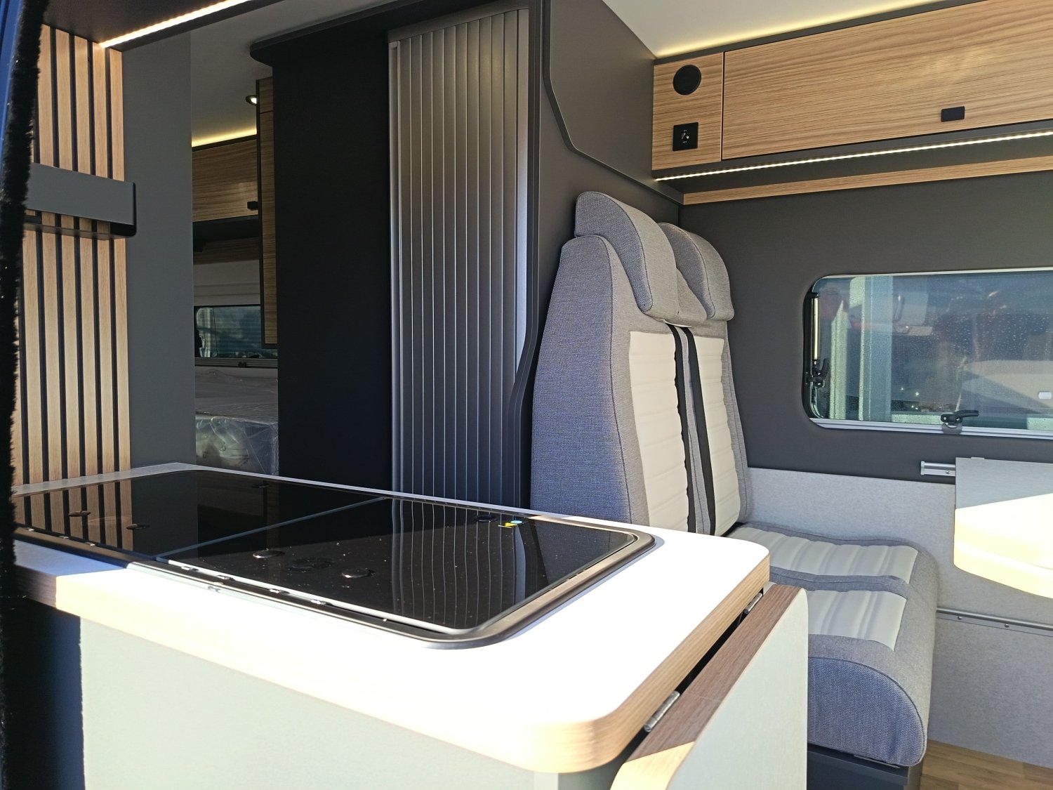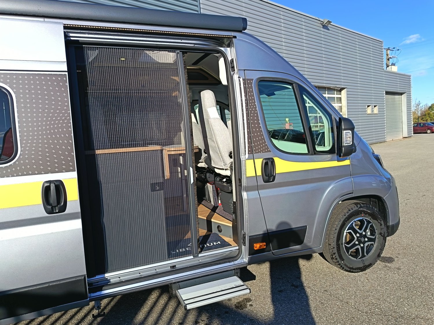 FRIGO COMPRESSION 141L, ECLAIRAGE EXTERIEUR, 2 PANNEAUX SOLAIRES 100W, STORES PLISSES OCCULTANTS DE CABINE, BATTERIE LITHIUM 200 AH, BOITE AUTO, CAMERA DE RECUL, RESERVOIR EAUX USEES HORS GEL ET CHAUFFE, BAIES AFFLEURANTES, STORE EXTERIEUR, GRIS ARTENSE, MARCHEPIED ELECTRIQUE, TRUMA DIESEL 4, RESERVOIR GAZOIL 90L, STATION RADIO 7" DAB, BANQUETTE ISOFIX, MOUSTIQUAIRE