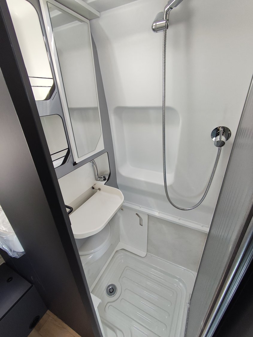 Niche dégagée, Calandre noire, "skid plate" noir,phares antibrouillard, Allumage automatique des feux et de l'essuie glace, Douchette eau froide/chaude dans la soute arrière, Occultations de la cabine coulissantes, pare-brise et baies, PACK PARE-CHOC : pare-choc peint,plaque de protection, PACK JANTES : jantes alliage 16", volant cuir, aerateur gris, Laterales, PACK 7"Pioneer, DAB, AppleCar/Android Auto, caméra de recul,, Haut-parleurs en cabine, 2 batteries AGM 95Ah et 1 panneau solaire 120W extraplat, Sellerie Clay - simili blanc, Store banne, PACK EPB : capteur de pression pneux, frein parking électriq