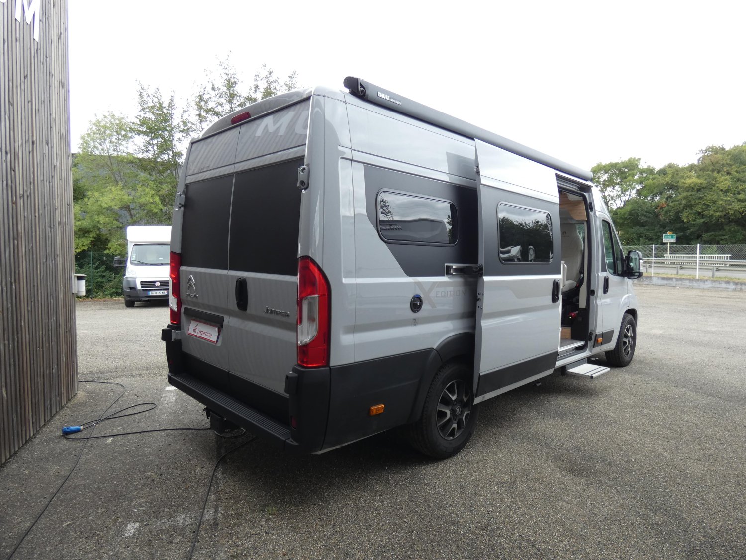 Régulateur + limiteur de vitesse, 3e Couchage, Stores de cabine, Batterie AGM, Panneau Solaire, Station multimédia + Caméra de recul, Jantes Alu 16", Roue de secours, Attelage, Store extérieur, Smart TV, Antenne Hertzienne, Moustiquaire de porte, Marche-pieds électrique
