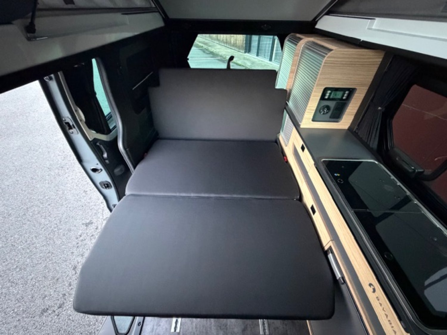 Ce van aménagé Bavaria est un véhicule polyvalent, adapté à une utilisation quotidienne. Il offre quatre places de couchage grâce à sa banquette arrière et son toit relevable. De plus, il dispose de nombreux espaces de rangement pratiques. Grâce à sa banquette coulissante, il est possible d'agrandir l'espace du salon ou du coffre selon les besoins.
