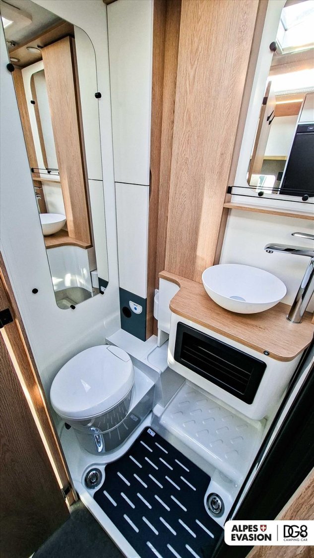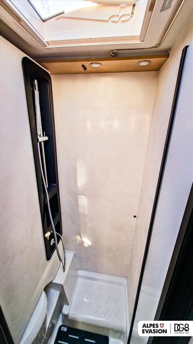 CAILLEBOTIS DANS DOUCHE, DOUCHE EXTERIEURE, ECLAIRAGE SOUTE, MODELE NEUF D EXPOSITION, PRISE 230 V SOUTE, RESERVOIR EAU USEES ISOLE CHAUFFE, STORE BANNE, TRUMA COMBI 4