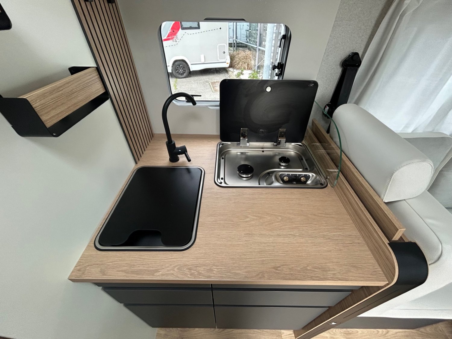 CAMERA DE RECUL, SKYDOME, BATTERIE AGM 95 Ah, 1 PANNEAU SOLAIRE 210 W, AUTORADIO PIONEER, TIROIR BAS DE CAISSE, DOUCHETTE, DETENDEUR-CRASH SENSOR TRUMA, TRUMA COMBI 6, STORE BANNE, BVA