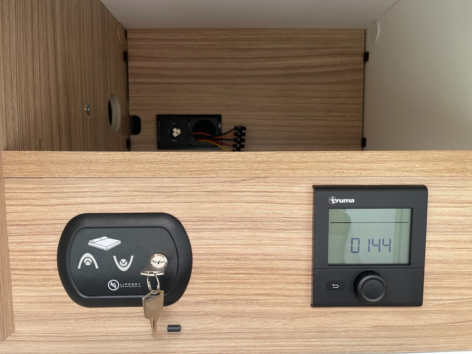 DAB, Android Auto/Apple Carplay, 2 panneaux solaires 100W monocristallin PERC Hte performance, Truma Combi D E / boitier 6000W, Convertisseur 12V/230V pur sinus 1500W, Booster pour charge batterie rapide 40A, Table centrale repliable, Réfrigérateur à compression, Caillebotis et porte serviette repliable, Fermeture centralisée, Douchette eau chaude / eau froide en soute, Autoradio Pioneer 7, Réservoir gazole 90L, Éclairage, rails et prise 230V en soute, Volant en cuir, Aérateurs gris alu, 1 batterie lithium200Ah, Caméra de recul, Haut-parleurs en cabine et en cellule, Allumage automatique des feux, Tiroir bas de caisse, Réservoir d'eaux usées hors gel, Jantes alliage 16", Store banne noir avec LED intégrée, Capteur d epression des pneus, Frein de parking électrique