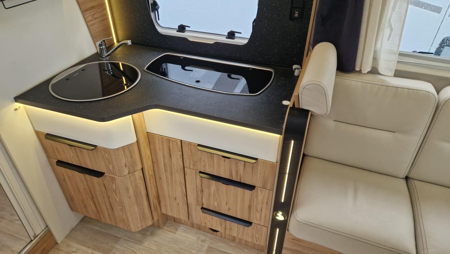 ATTELAGE, DOUCHETTE EXTERIEURE, ECLAIRAGE LEDS, STORE EXTERIEUR, KIT COUCHAGE SALON, 2 BATTERIES CELLULE, STORES REMIS, JANTES ALU 16P, TIROIR BAS DE CAISSE, STATION MULTIMEDIA ET CAMERA DE RECUL, PANNEAU SOLAIRE