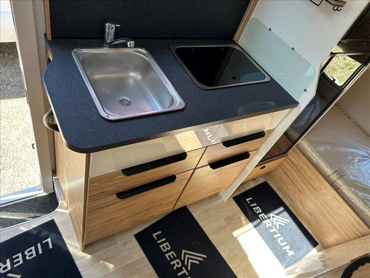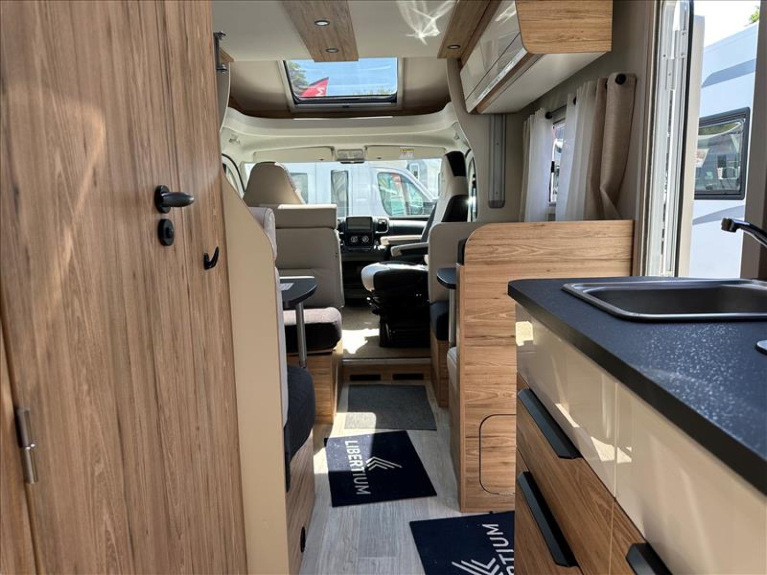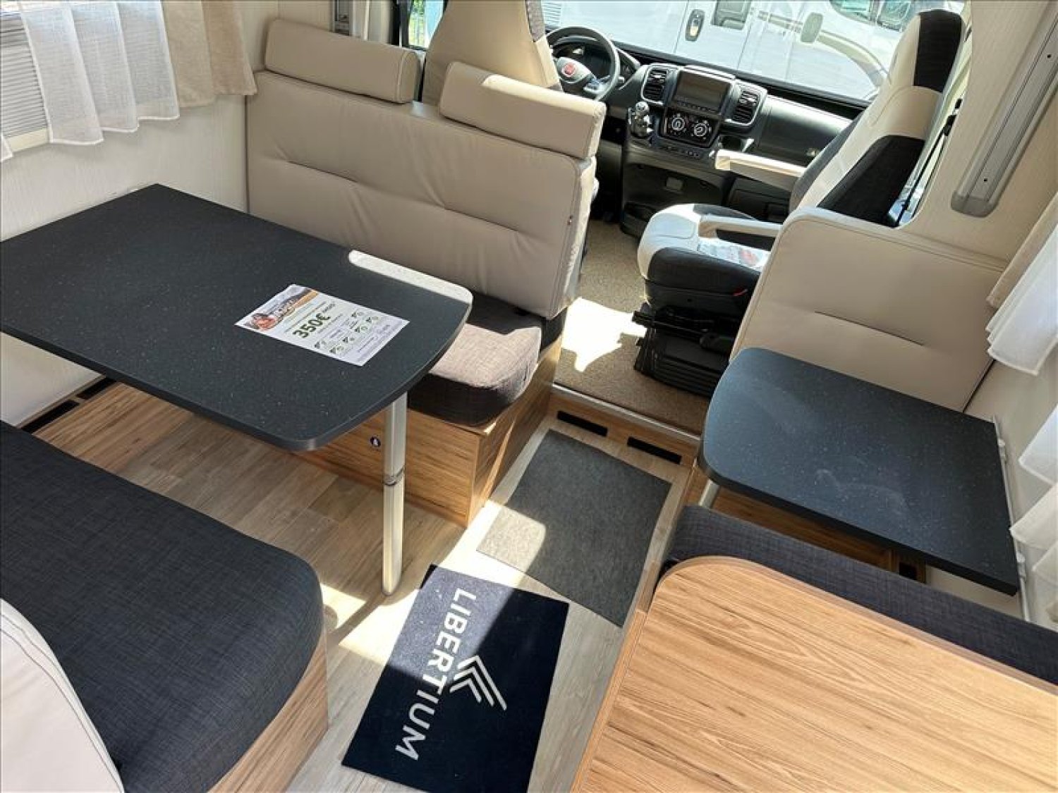 Revêtement polyester sous plancher, Réchaud 3 feux, Réfrigérateur 160 L, Rétroviseurs dégivrants et électriques, Sièges pivotants cabine et réglables en hauteur, Feux diurnes, Fix and Go Kit, Lit pavillon électrique, Matelas confort, ABS, Airbag conducteur, Baie double vitrage, Toit ouvrant panoramique, Verrouillage centralisé cabine,, WC cassette extractible à roulettes, Bas de caisse ALU, Cache grilles frigo, Cerclage optiques + calandre noire,, Eclairage extérieur à LED, Crash Sensor TRUMA, Occultations cabines à ventouse, Pare choc peint, Chauffage truma combi 6, Clim manuelle, Coffre à gaz 2 bouteilles
