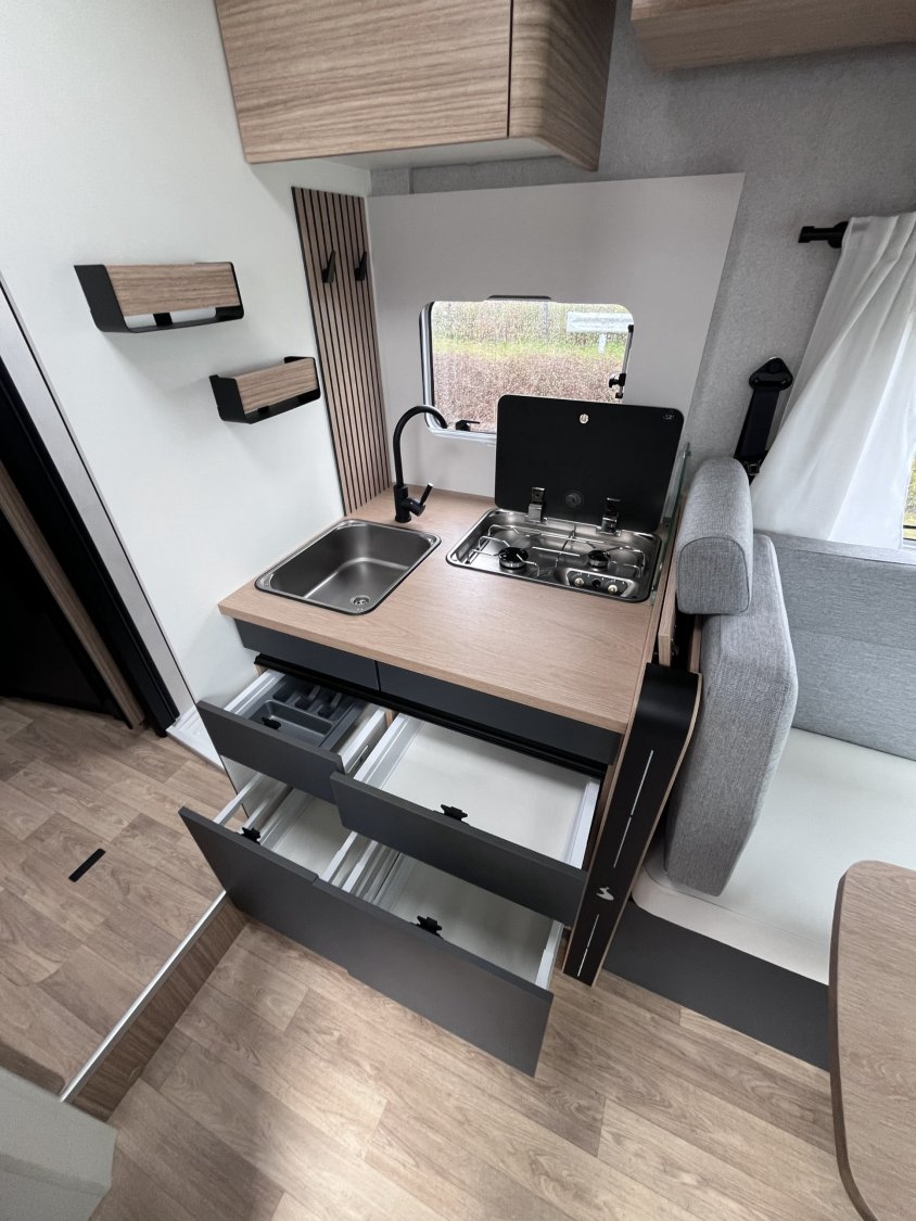 AUTORADIO 7" DAB, BATTERIE LITHIUM 200AH, CAMERA DE RECUL, DOUCHE EXTERIEURE, DEUX PANNEAU SOLAIRE 100W, LIT ARRIERE HAUT, REFRIGERATEUR A COMPRESSION, RESERVOIR GAZOLE 90L, STORE BANNE, TIROIR BAS DE CAISSE, TRUMA COMBI DIESEL 6E