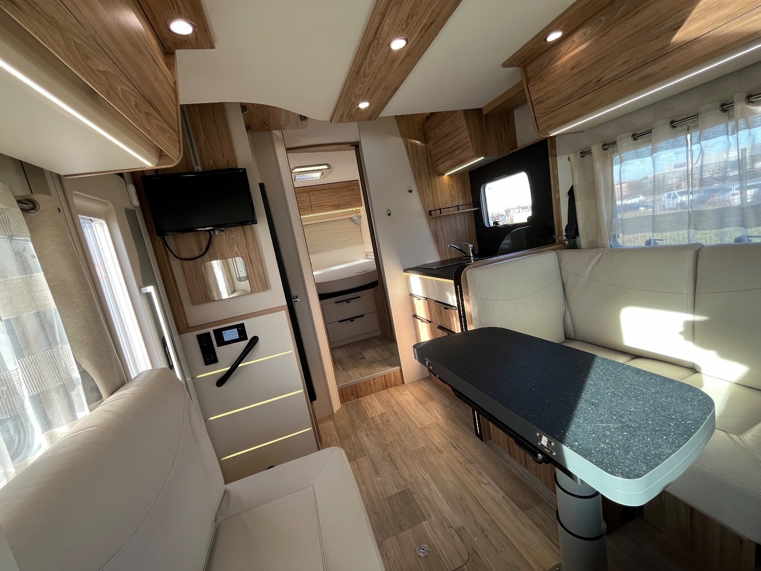Ce Bavaria T726 FC Style propose un compromis parfait car il propose l’implantation la plus demandée du marché: Lit central, lit pavillon, banquette face/face pour une longueur de 7,20m. Full équipé, il est prêt à partir!