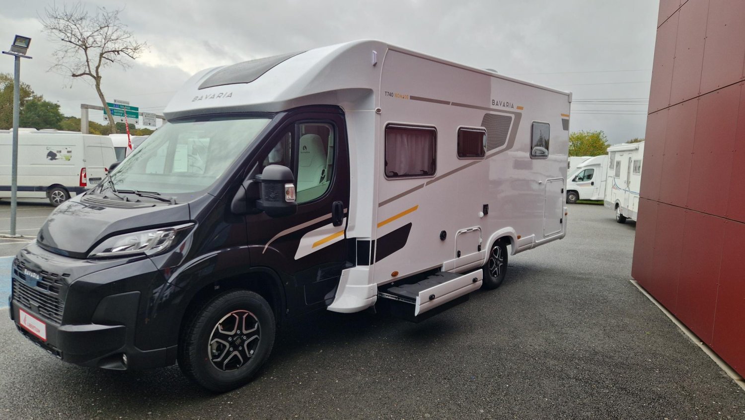 Le Bavaria T 740 Nomade est un profilé moderne de 7,45 m de long (environ) conçu pour 4 personnes (4 places carte grise / 4 couchages), basé sur le châssis Fiat Ducato avec motorisation 2,2 l diesel de 140 ch et boîte automatique.