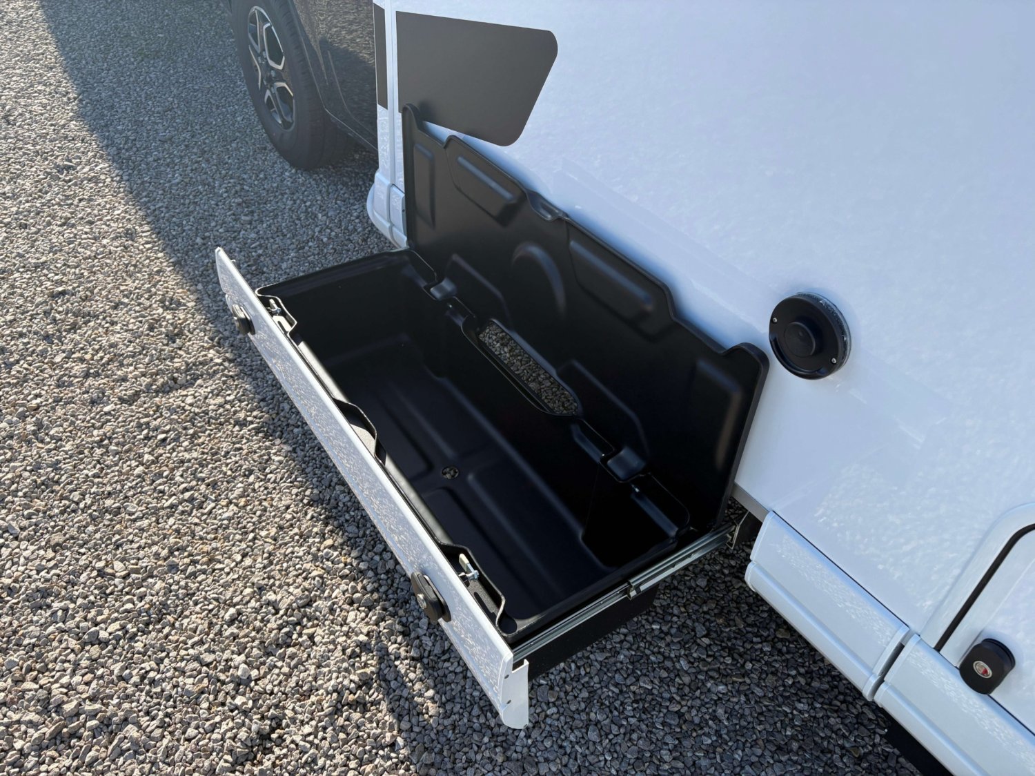 REFRIGERATEUR A COMPRESSION, STORE EXTERIEUR, LITHIUM 200A + 2 PANNEAUX SOLAIRE, PACK JANTES, RESERVOIR CARBURANT 90 L, TIROIR BAS DE CAISSE, DOUCHE EXTERIEURE, LIT PAVILLON, CALANDRE NOIRE, AUTORADIO 7 CAMERA DE RECUL, TRUMA COMBI DIESEL 6E