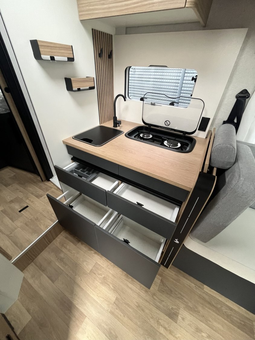 RESERVOIR CARBURANT 90L, STORE BANNE, TIROIR BAS DE CAISSE, TRUMA COMBI DIESEL 6E, BATTERIE LITHIUM 210 AH, CAMERA DE RECUL, DOUCHE EXTERIEURE, LIT ARRIERE HAUT, AUTORADIO 7" DAB, DEUX PANNEAUX SOLAIRE 100W, REFRIGERATEUR A COMPRESSION