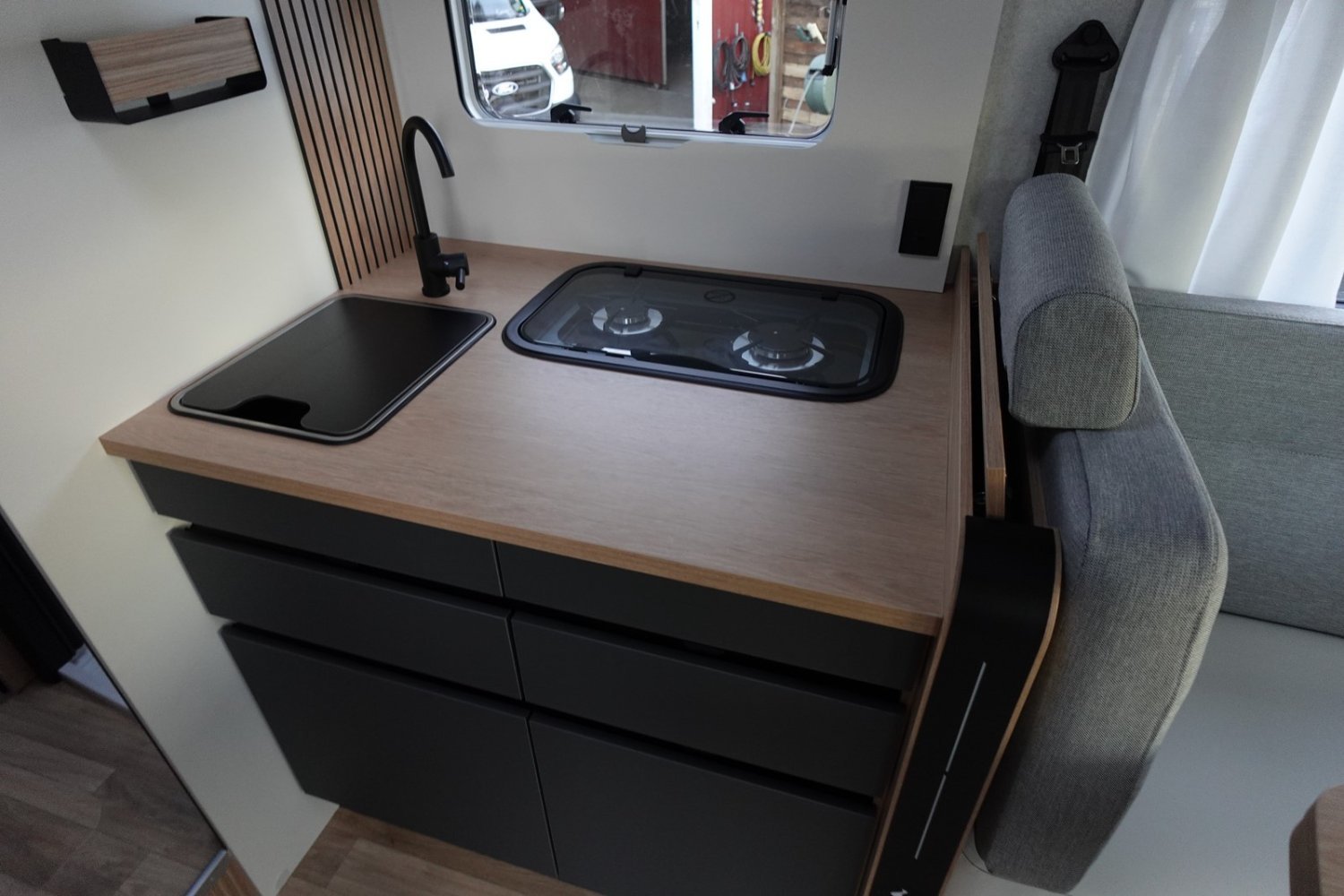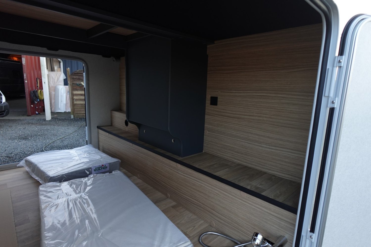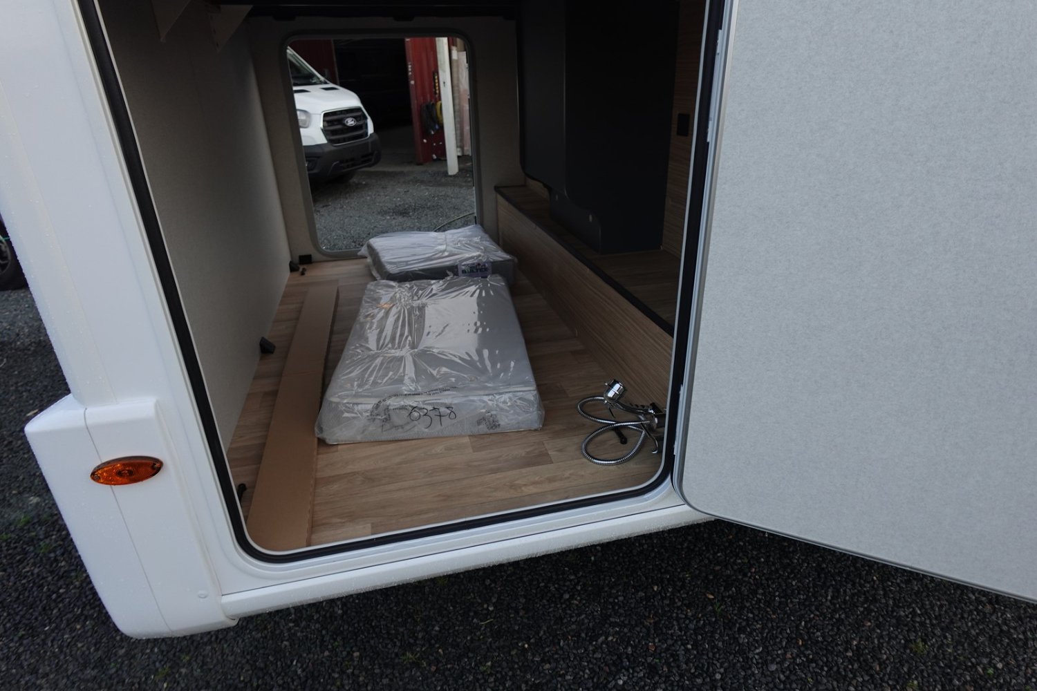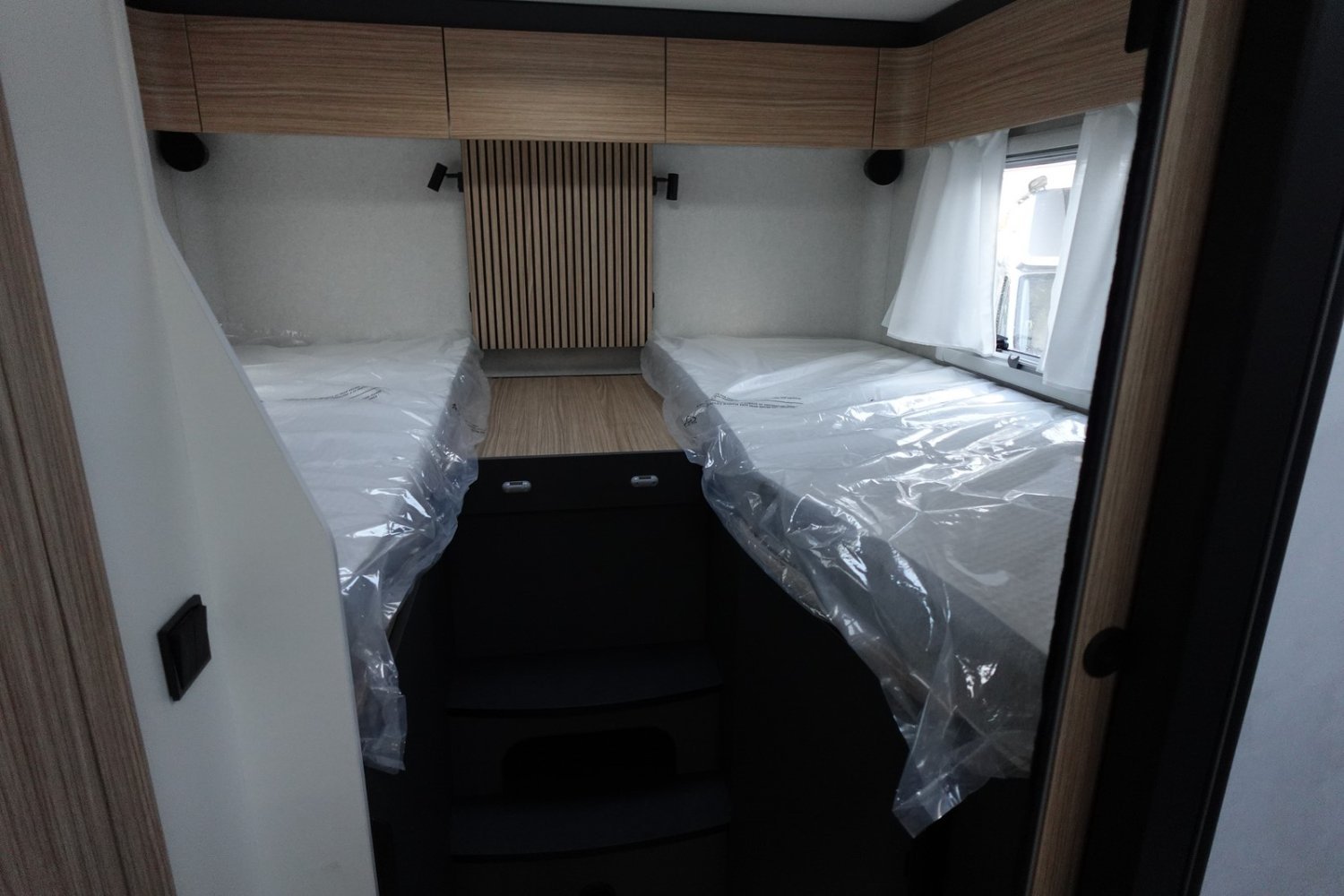 Profitez d'une grande chambre à l'arrière avec deux lits jumeaux simples, facilement convertibles en lit garage king size. Sa grande salle d'eau traversante, sa cuisine ergonomique et son salon face-face en font LE véhicule tout désigné pour partir en escapade.