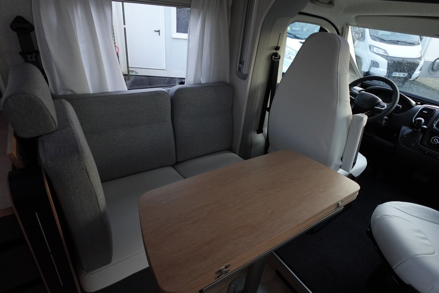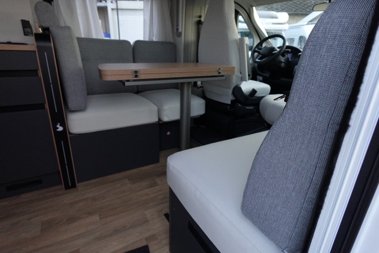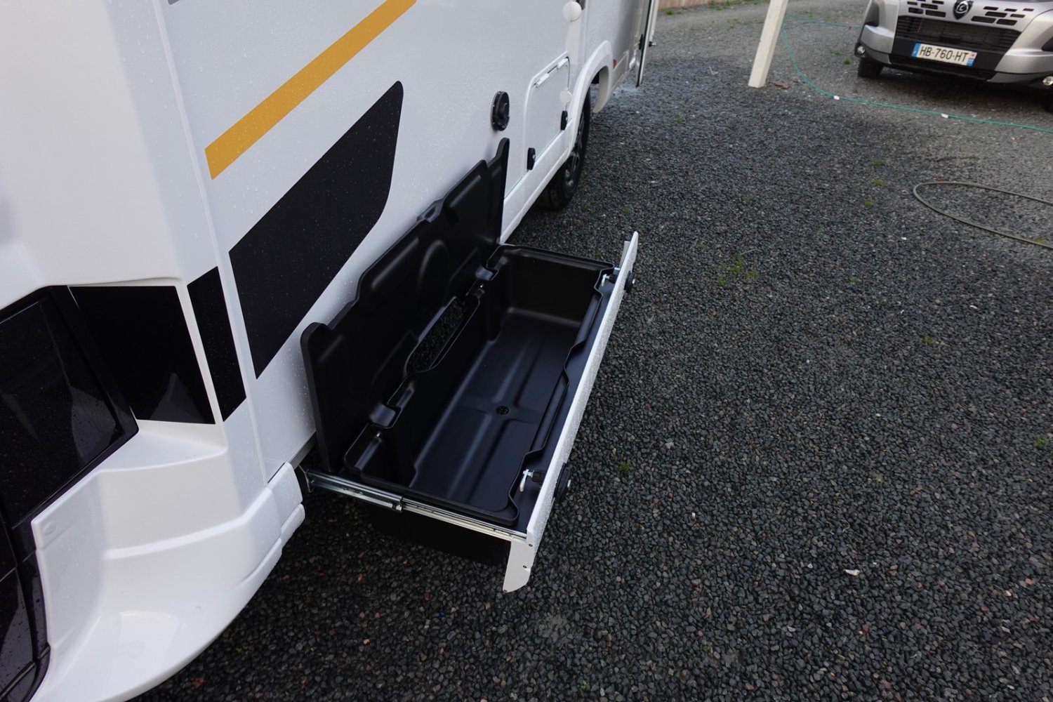 (Motorisation 140 CV, Boite automatique, Cabine noire, Batterie Lithium 200 Ah, 2 Panneaux solaire 100 W haute performance, Booster pour une charge rapide de la batterie, Chauffage hybride Truma D 6 E, Réfrigérateur à compression 158 litres, Store extérieur, Tiroir bas de caisse, Douchette eau froide/eau chaude dans la soute arrière, Lit de pavillon électrique avec sommier à lattes, Sellerie bi-ton et bi-matière simili et tissu Galet, Ambiance Pyla)
