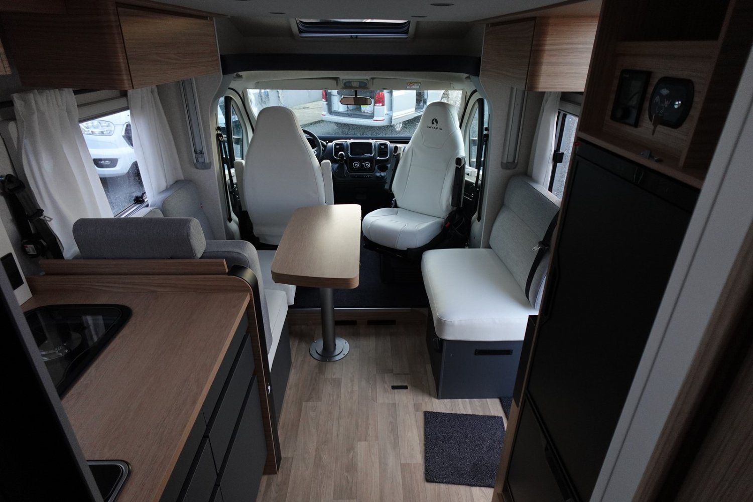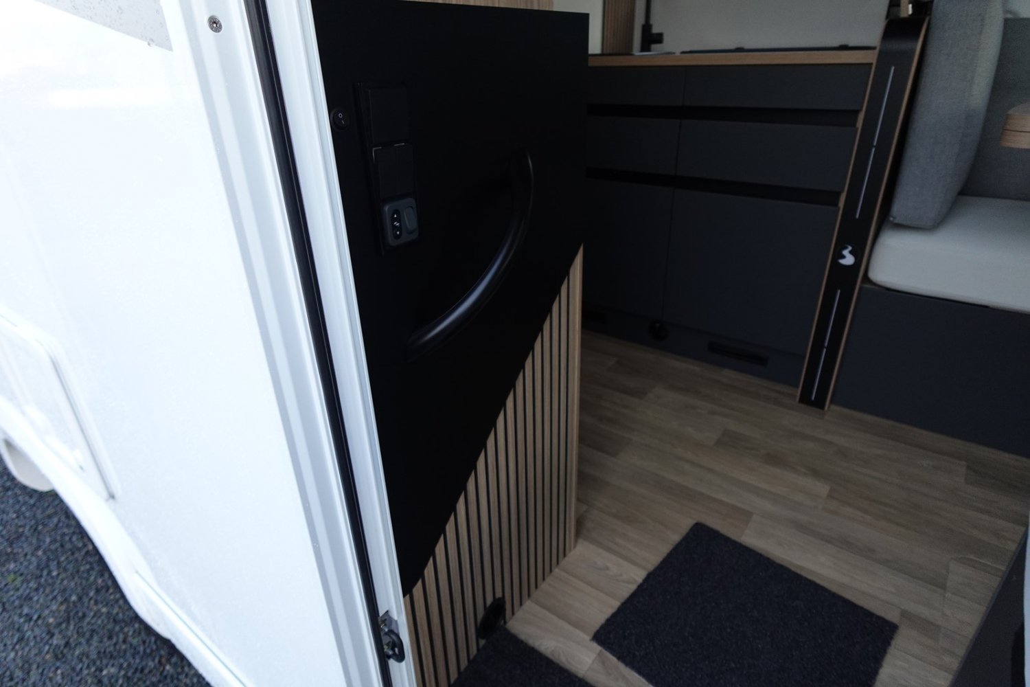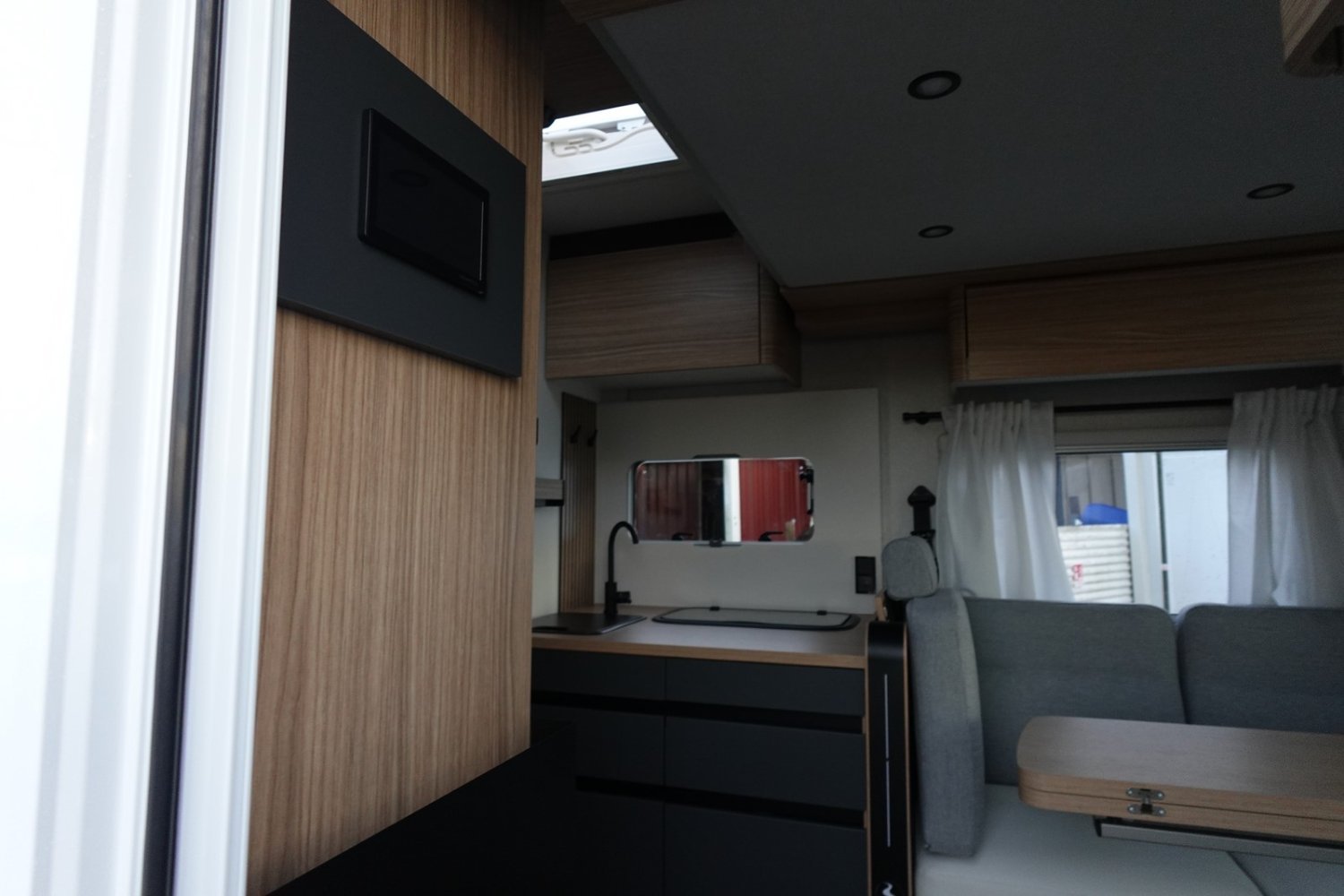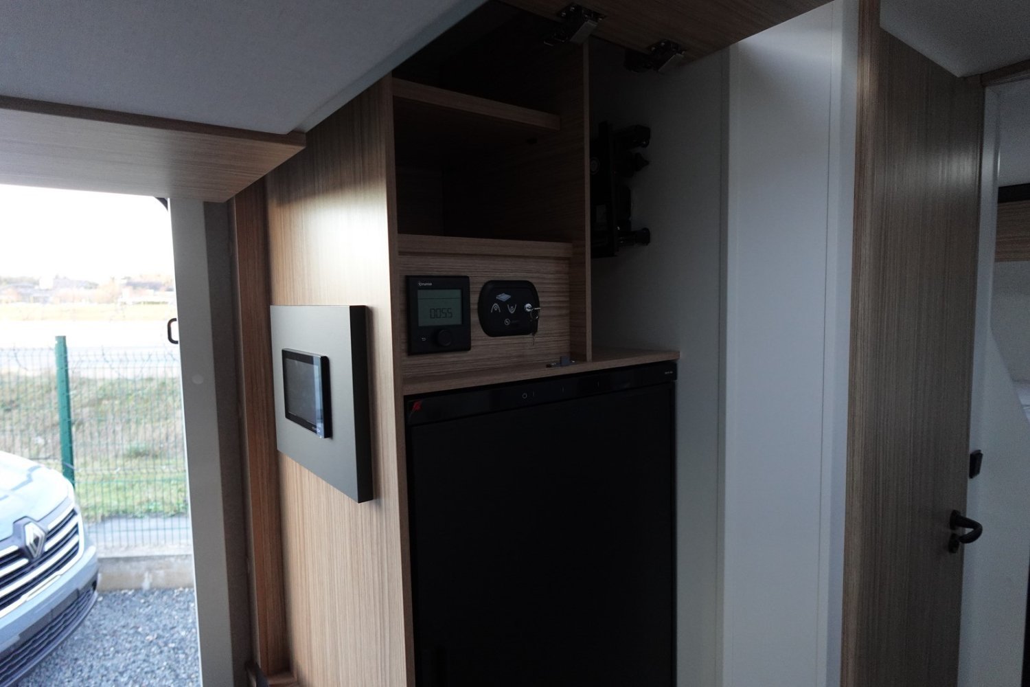 (Motorisation 140 CV, Boite automatique, Cabine noire, Batterie Lithium 200 Ah, 2 Panneaux solaire 100 W haute performance, Booster pour une charge rapide de la batterie, Chauffage hybride Truma D 6 E, Réfrigérateur à compression 158 litres, Store extérieur, Tiroir bas de caisse, Douchette eau froide/eau chaude dans la soute arrière, Lit de pavillon électrique avec sommier à lattes, Sellerie bi-ton et bi-matière simili et tissu Galet, Ambiance Pyla)